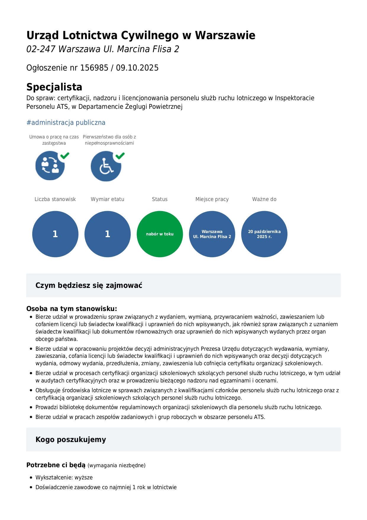 Specjalista ds. certyfikacji, nadzoru i licencjonowania personelu służb ruchu lotniczego