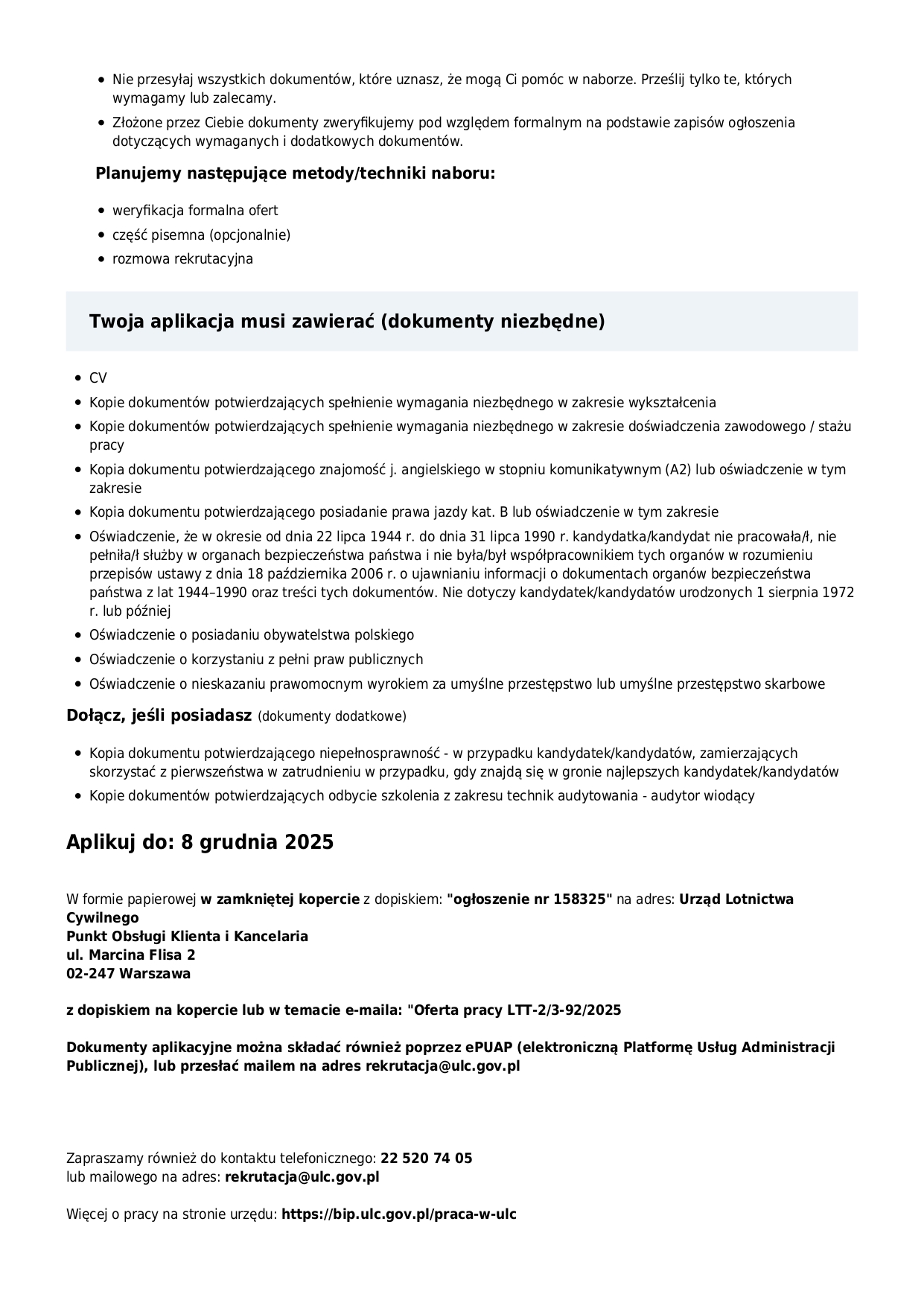 Zakres obowiązkówKierownik Organizacji w zakresie obsługi technicznej, ponosi odpowiedzialność za:wykonywanie całej obsługi technicznej statków powietrznych zgodnie z normami technicznymi i...