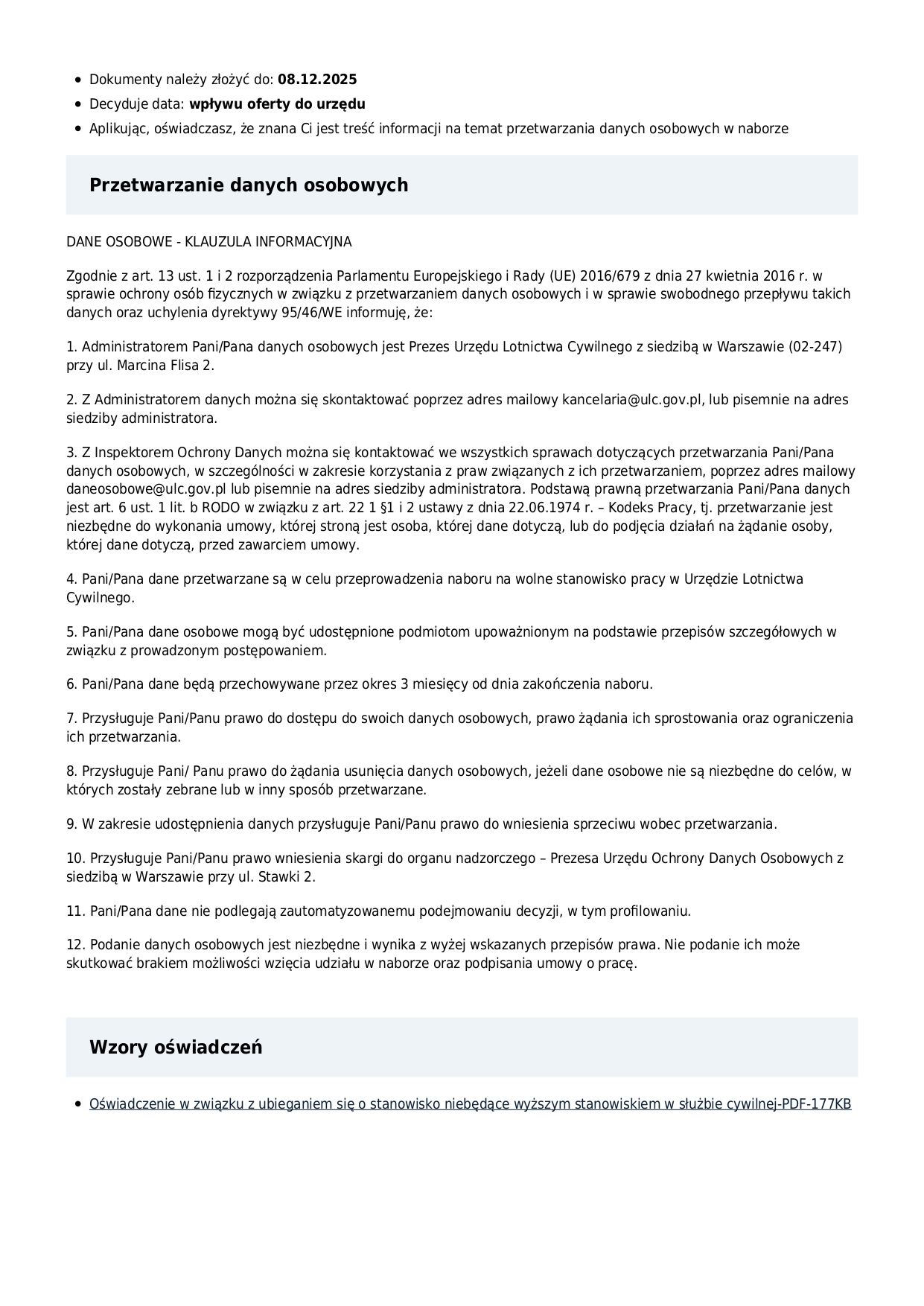 Starszy specjalista ds. ciągłej zdatności do lotu statków powietrznych GA w ULC - POZNAŃ