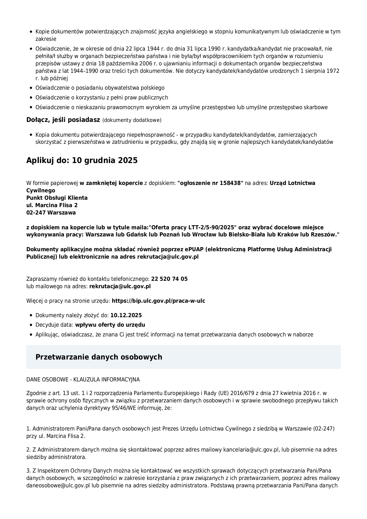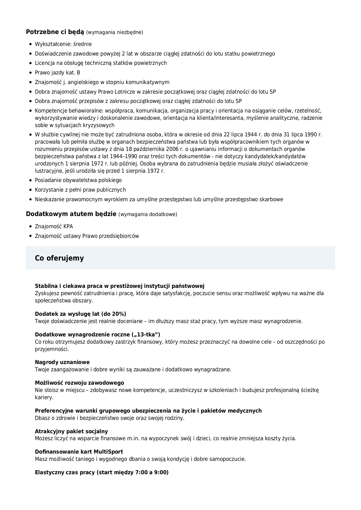Starszy specjalista ds. ciągłej zdatności do lotu statków powietrznych GA w ULC - POZNAŃ