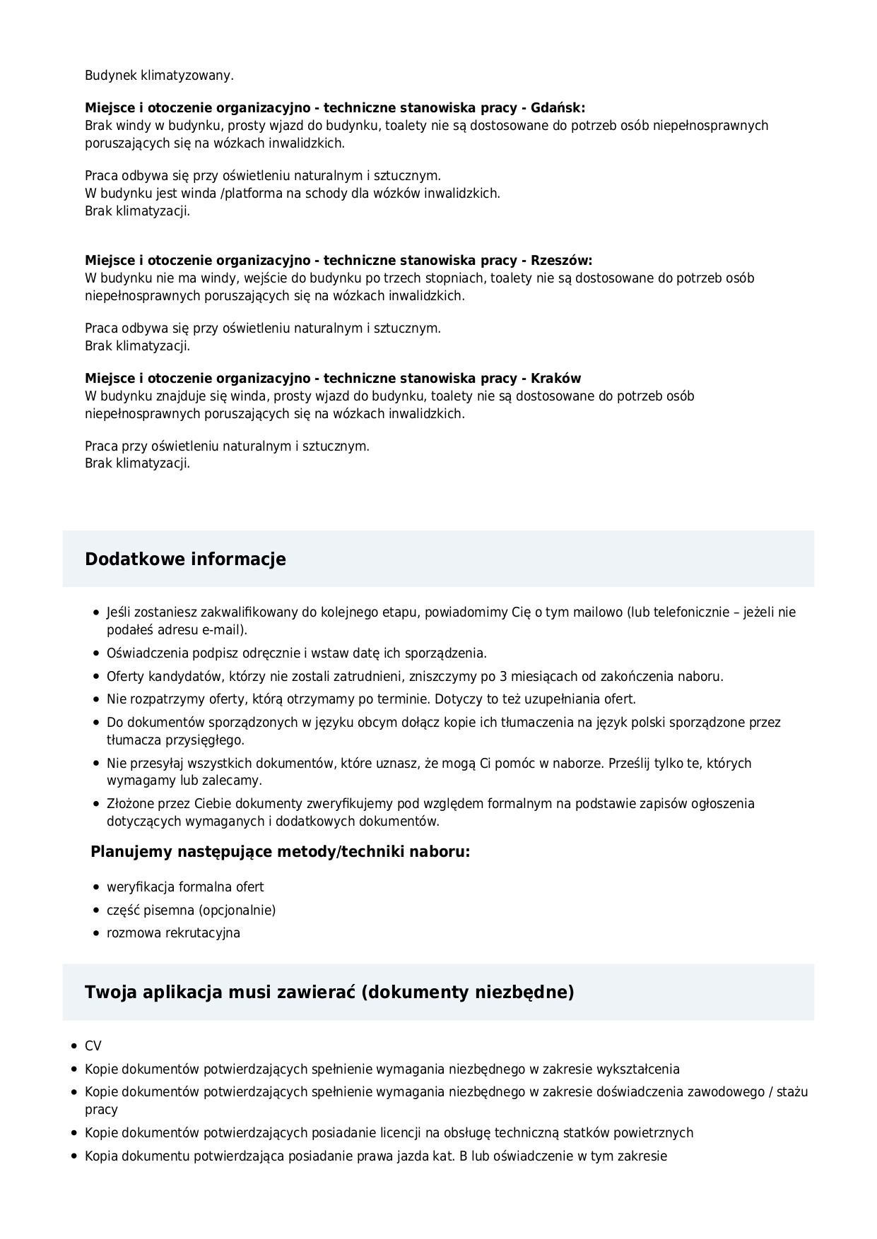 Starszy specjalista ds. ciągłej zdatności do lotu statków powietrznych GA w ULC - RZESZÓW