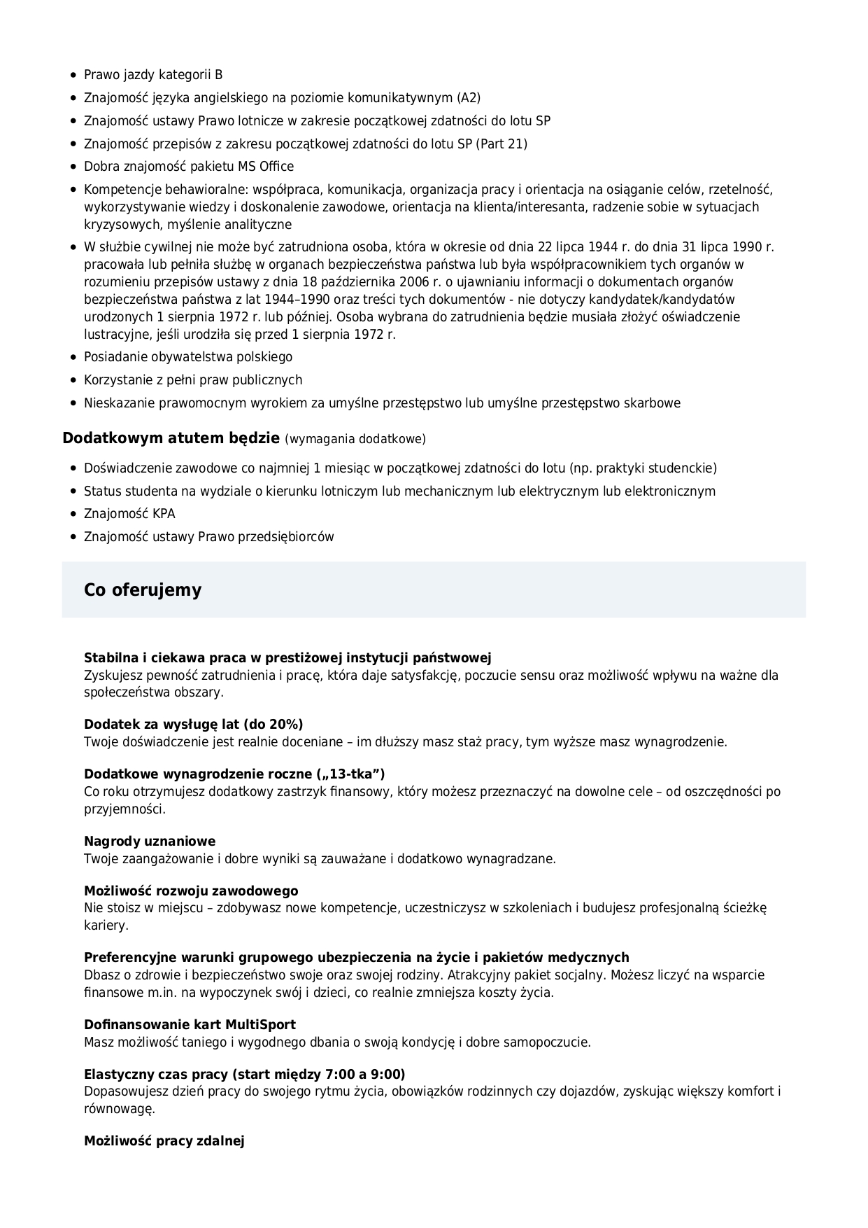 Inspektor ds. ciągłej zdatności do lotu statków powietrznych GA w ULC - Bielsko Biała