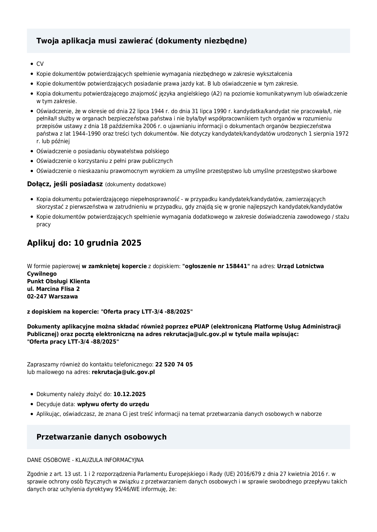 Starszy specjalista ds. ciągłej zdatności do lotu statków powietrznych GA w ULC - POZNAŃ