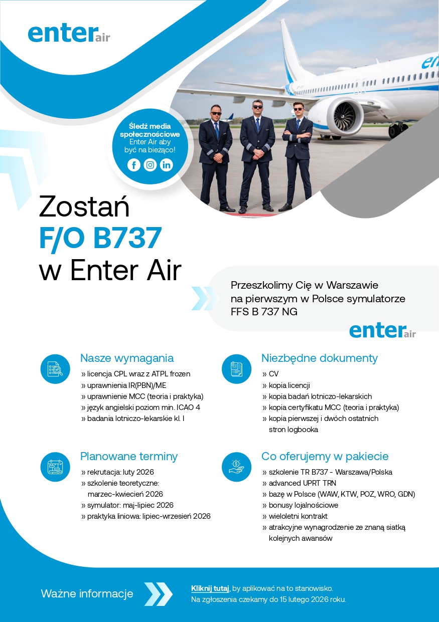 LOT Crew Sp. z o.o. działająca na zlecenie PLL LOT S.A. poszukuje pilotów statku powietrznegoNowoczesna flota, wyjątkowa atmosfera i stabilny grafik – zapraszamy na pokład Polskich Linii Lot...