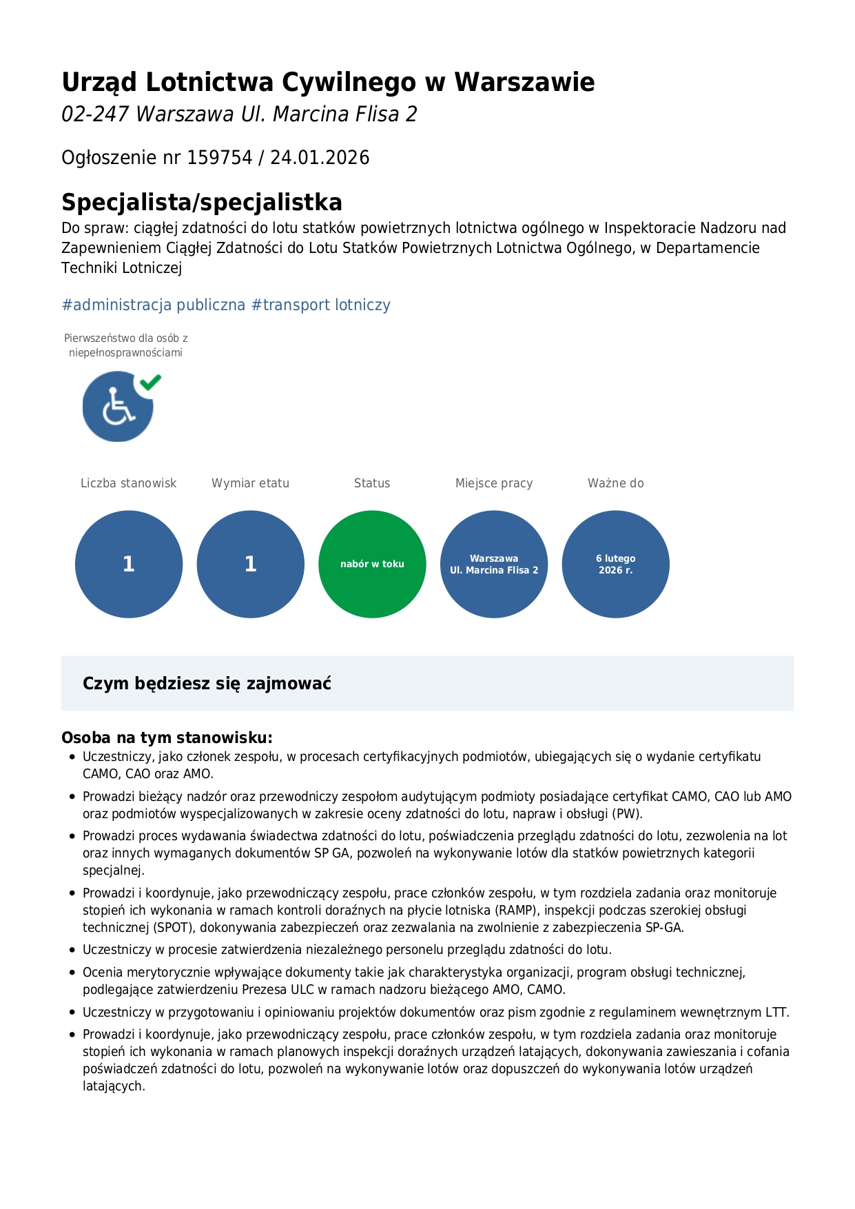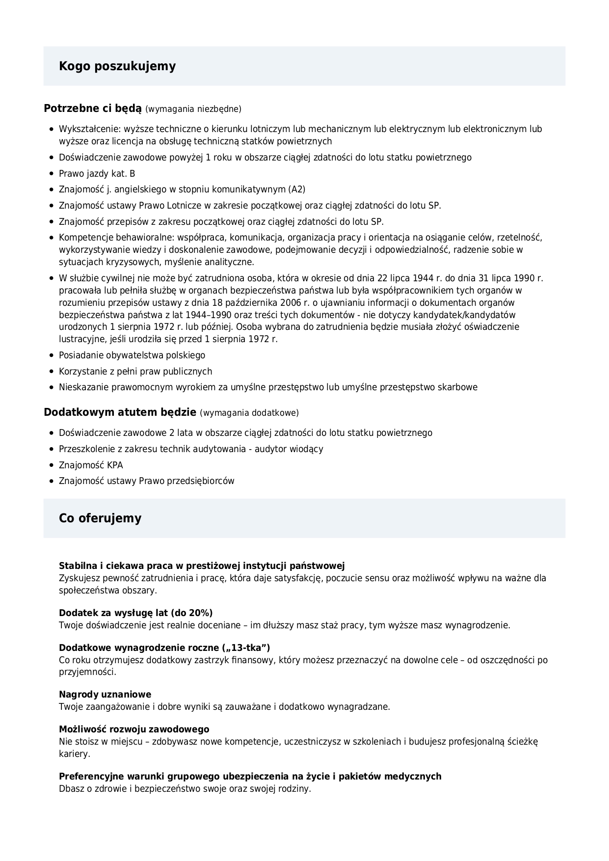 Specjalista/Specjalistka ds. Ciągłej zdatności do lotu statków powietrznych GA - Warszawa
