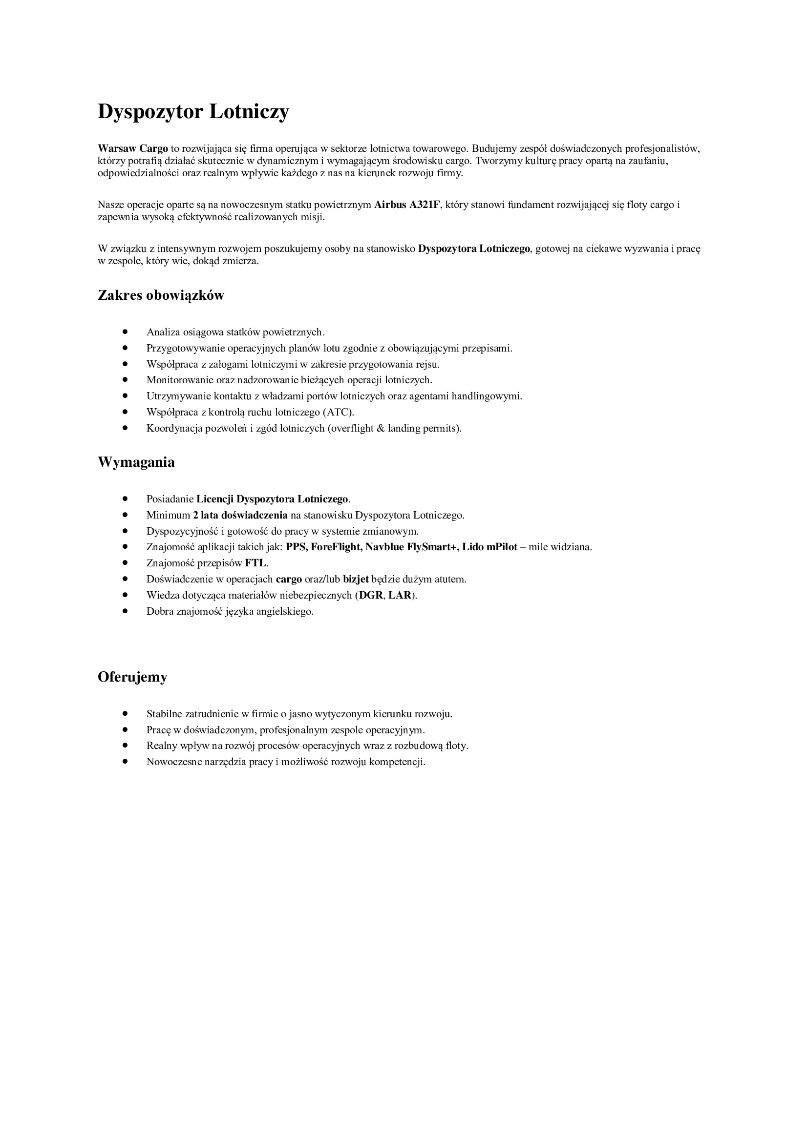 Praktykant/Praktykantka - Dyspozytor Lotniczy