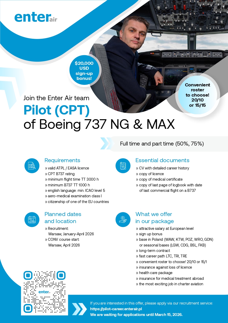 LOT Crew Sp. z o.o. działająca na zlecenie PLL LOT S.A. poszukuje Kapitana Statku Powietrznego B737Nowoczesna flota, wyjątkowa atmosfera i stabilny grafik – zapraszamy na pokład Polskich Lin...