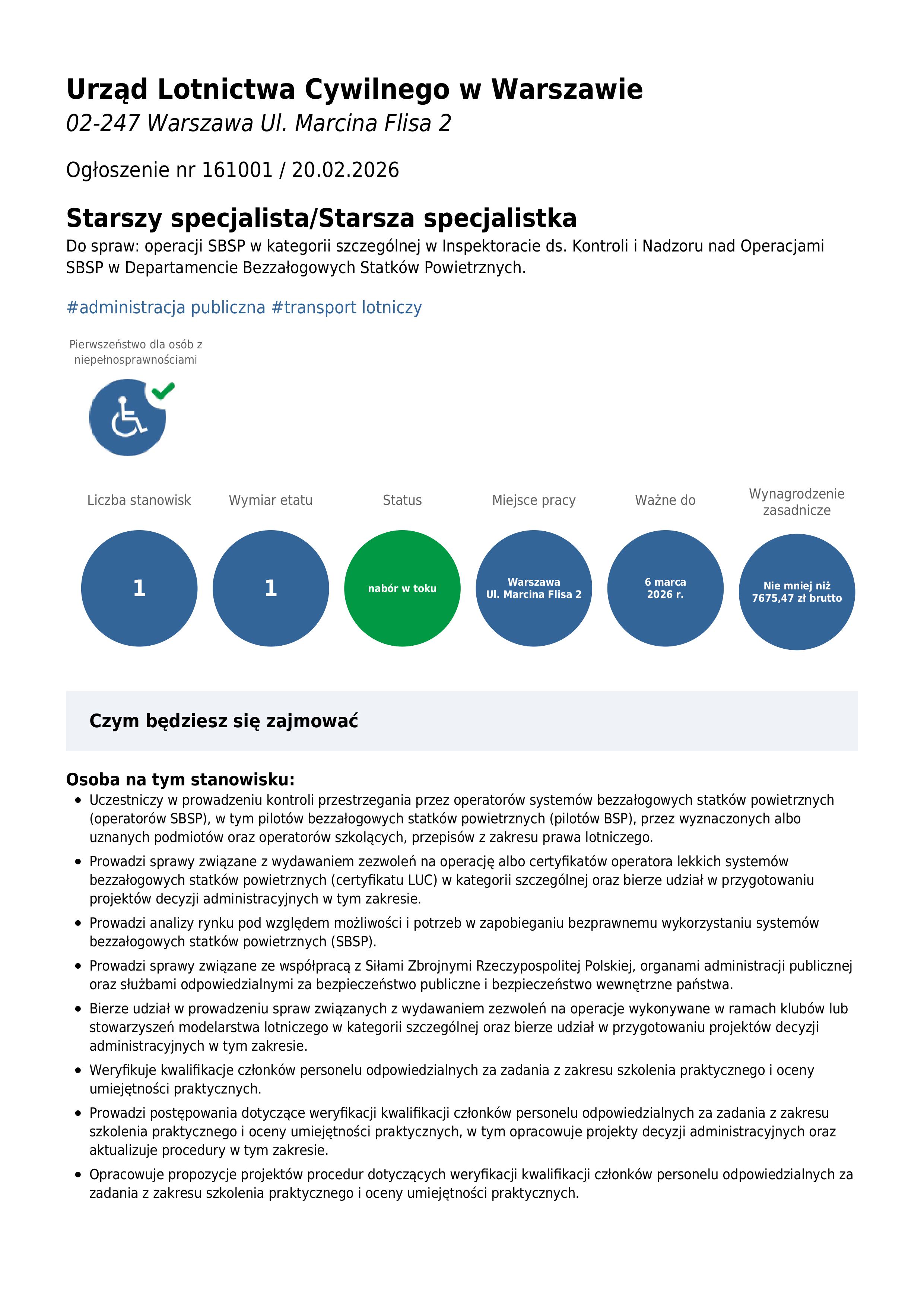 Starszy specjalista/Starsza specjalistka ds. operacji SBSP
