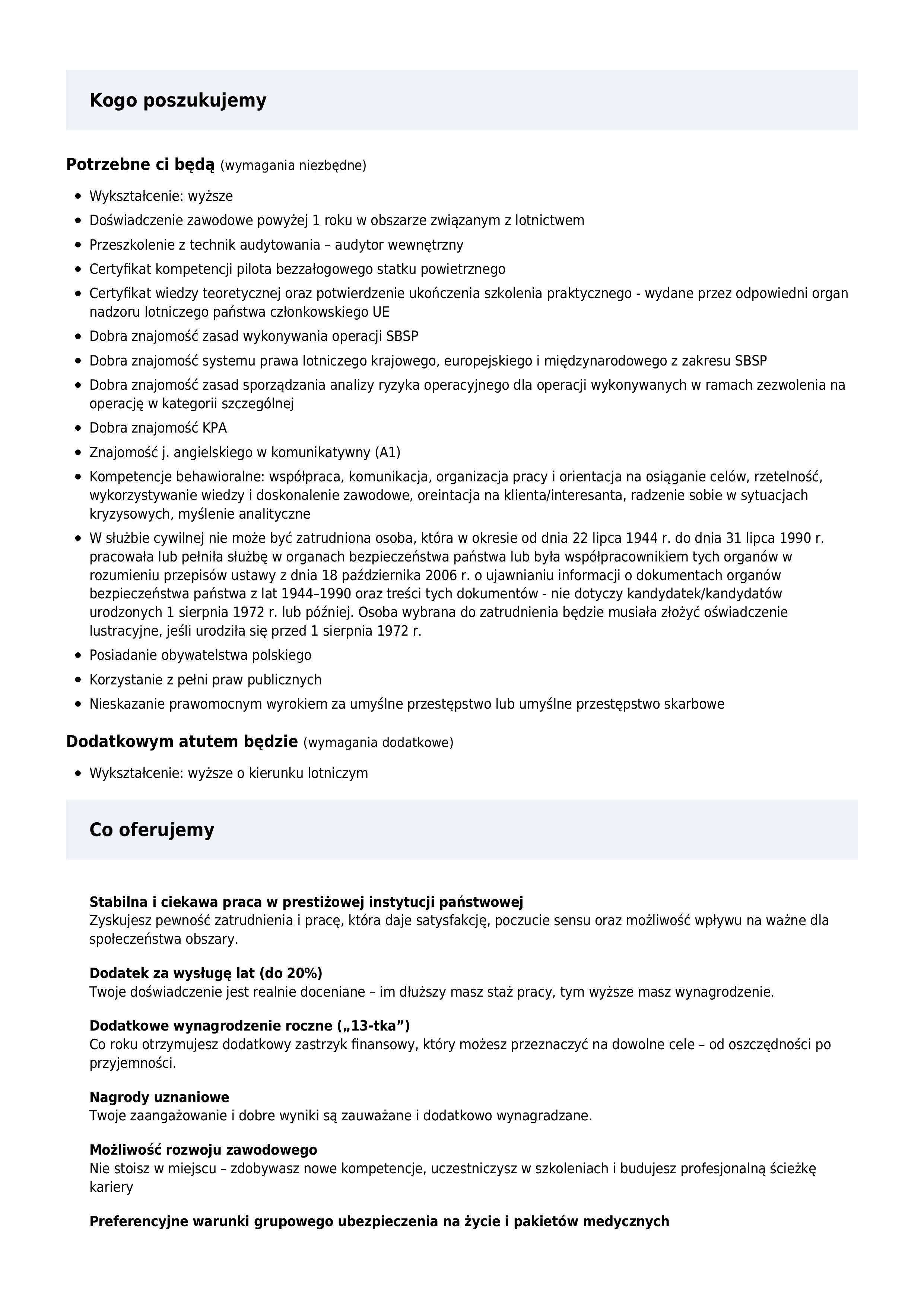 Specjalista/Specjalistka ds. Ciągłej zdatności do lotu statków powietrznych GA - Poznań