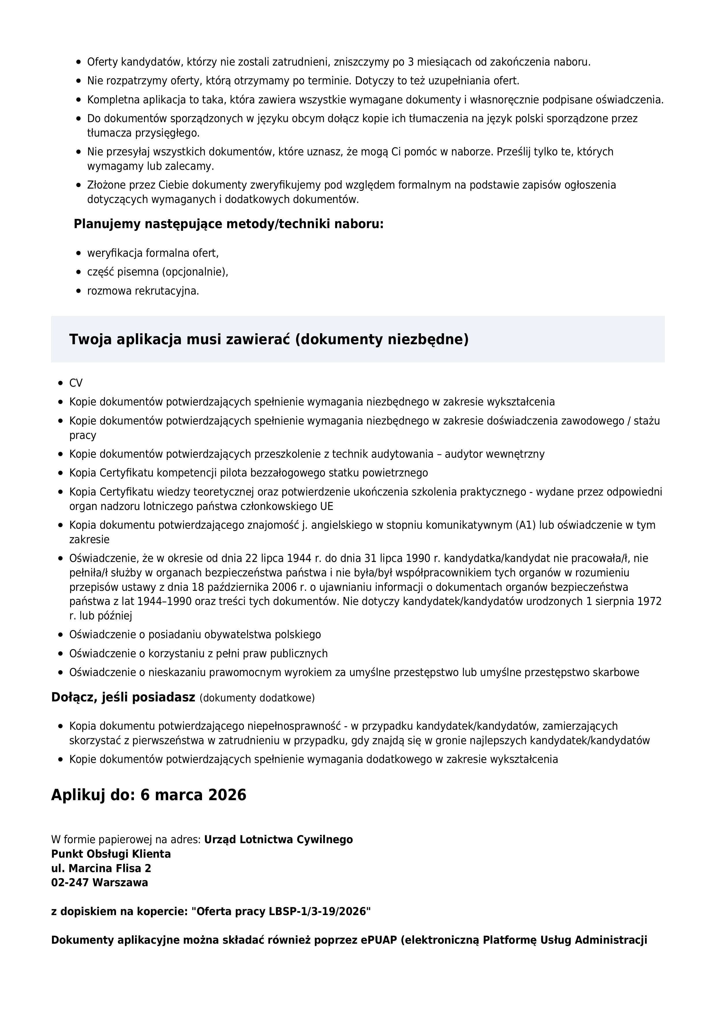Specjalista/Specjalistka ds. Ciągłej zdatności do lotu statków powietrznych GA - Warszawa