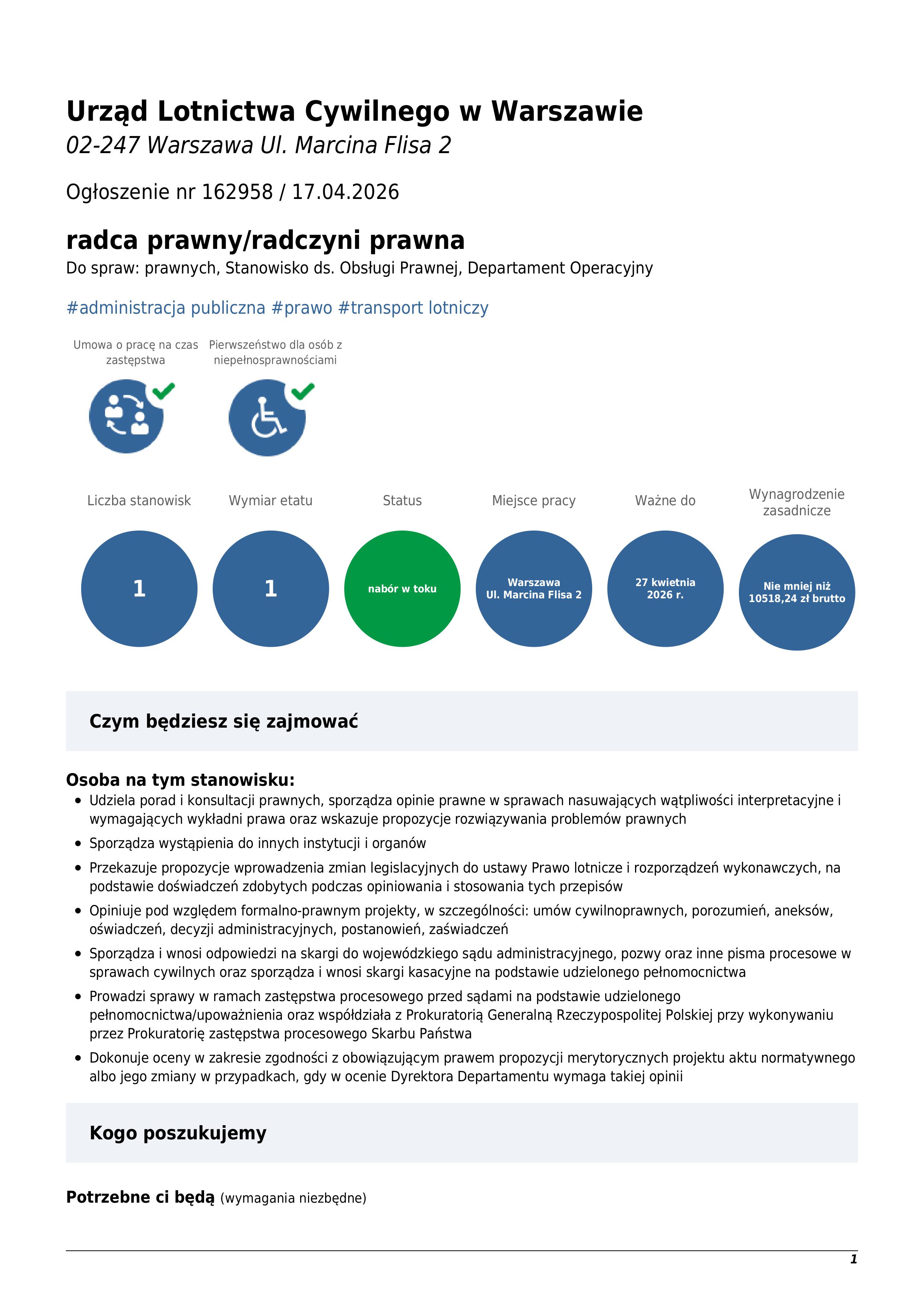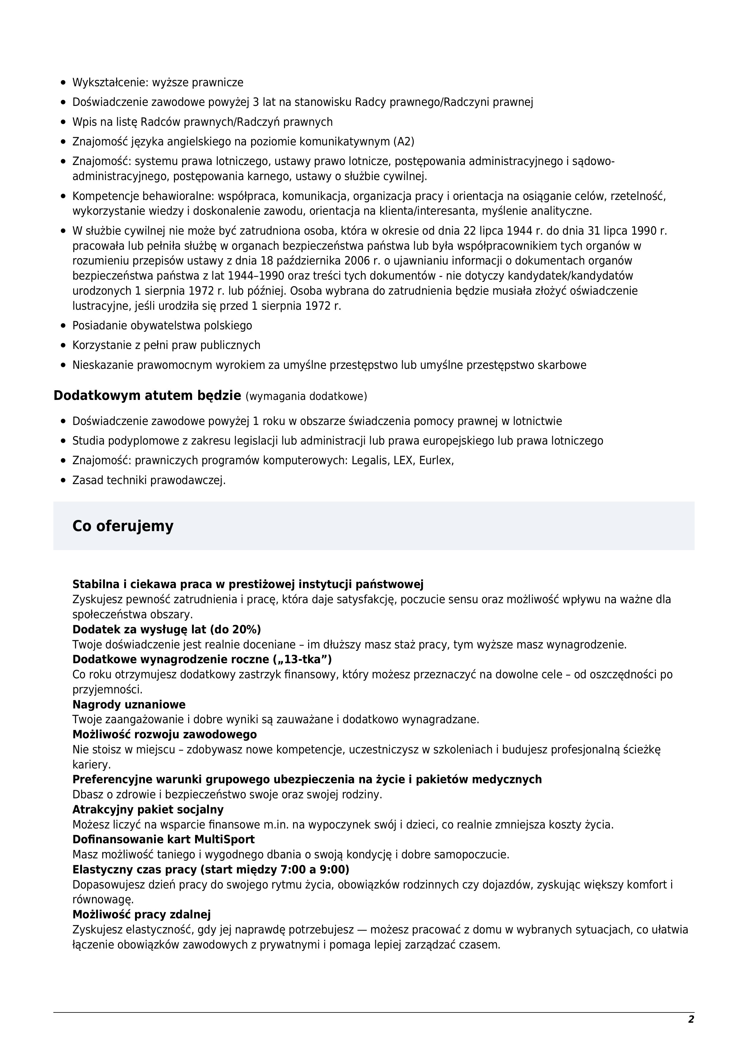 Specjalista/Specjalistka ds. Certyfikacji i Bezpieczeństwa Lotniczego w ULC