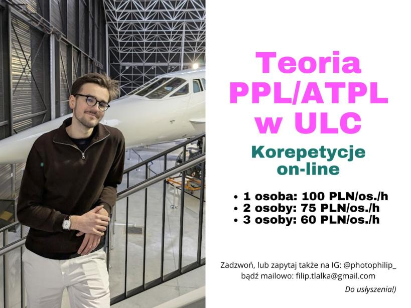 Oferuję korepetycje online przygotowujące do egzaminów teoretycznych PPL/ATPL w ULC