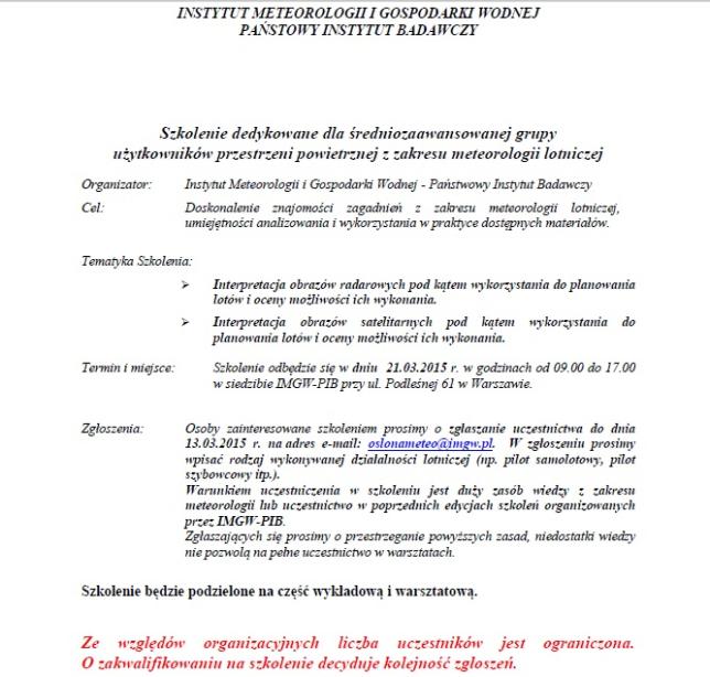 Szkolenie IMGW dla średniozaawansowanej grupy użytkowników przestrzeni powietrznej z zakresu meteorologii lotniczej
