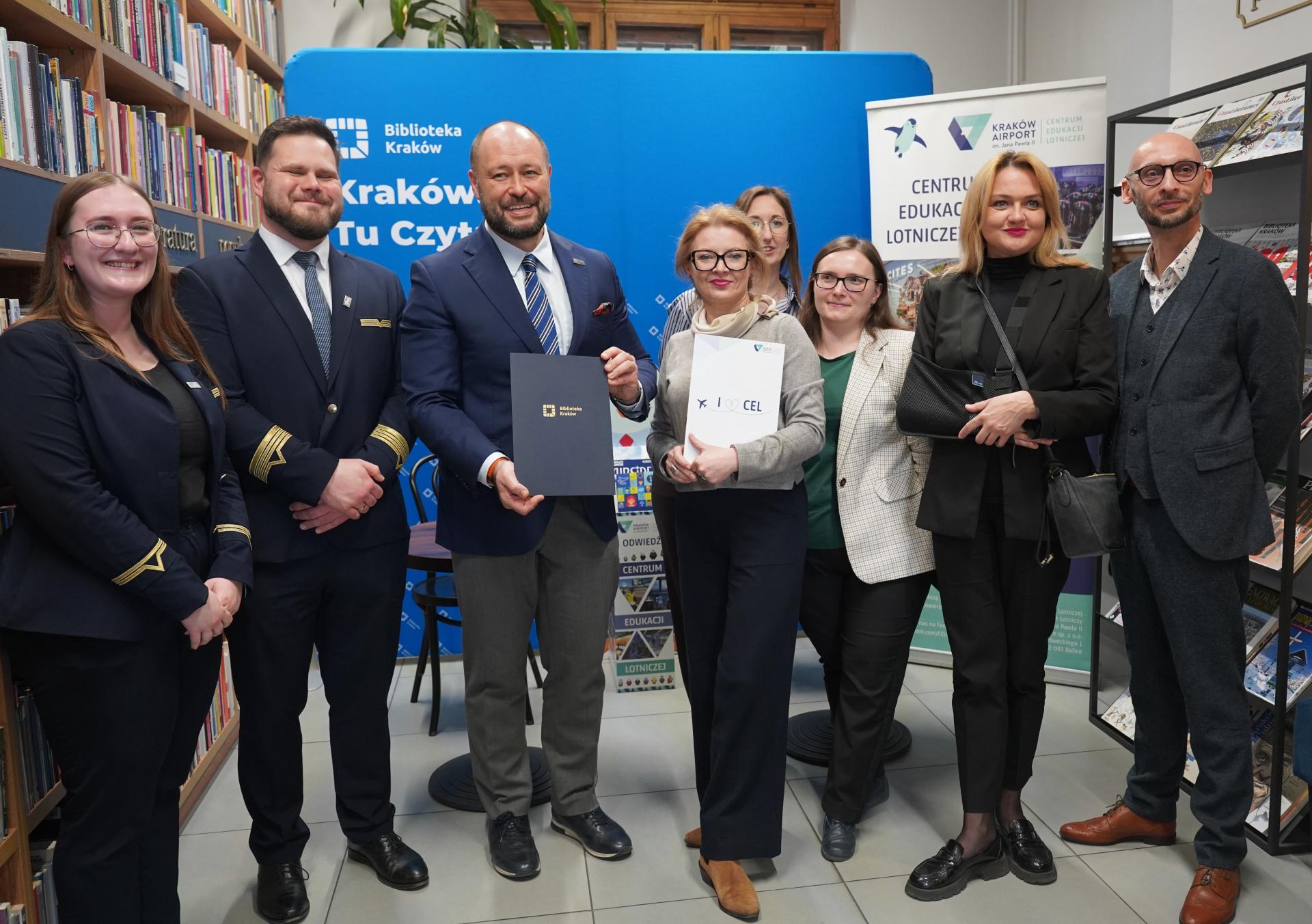 Współpraca Biblioteki Kraków i Centrum Edukacji Lotniczej (CEL) Kraków Airport, trwająca od maja 2022 roku, łączy promocję czytelnictwa z edukacją lotniczą. Kluczowym elementem inicjatywy są regały bookcrossingowe „Odlotowa biblioteka”, zlokalizowane w siedzibie CEL oraz w hali odlotów lotniska. Wspólnymi działaniami były także stoiska podczas Święta Rodziny Krakowskiej, spotkania oraz akcje czytania połączone z poznawaniem zawodów lotniskowych. Kolejnym punktem był projekt „Nowe podróże po literaturze” oraz zainicjowany w 2025 roku cykl edukacyjny „Biblioteczny terminal”, realizowany w 11 filiach biblioteki, , który jest kontynuowany w 2026 roku.