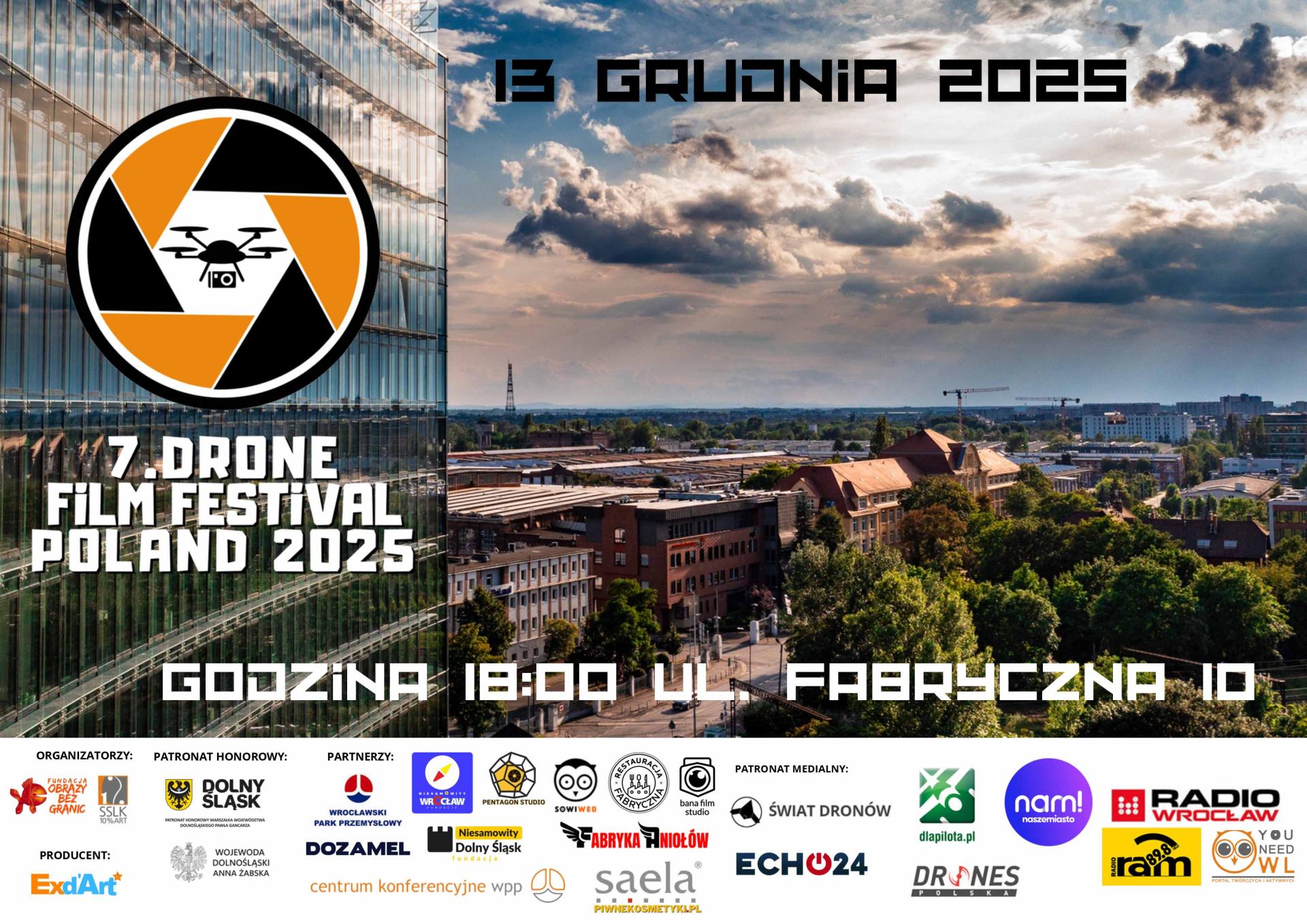 Patronat medialny: portal Świat Dronów, portal Dla Pilota, Drones Polska, Telewizja Echo 24, Radio Wrocław, Radio RAm, Nasze miasto Wrocław.