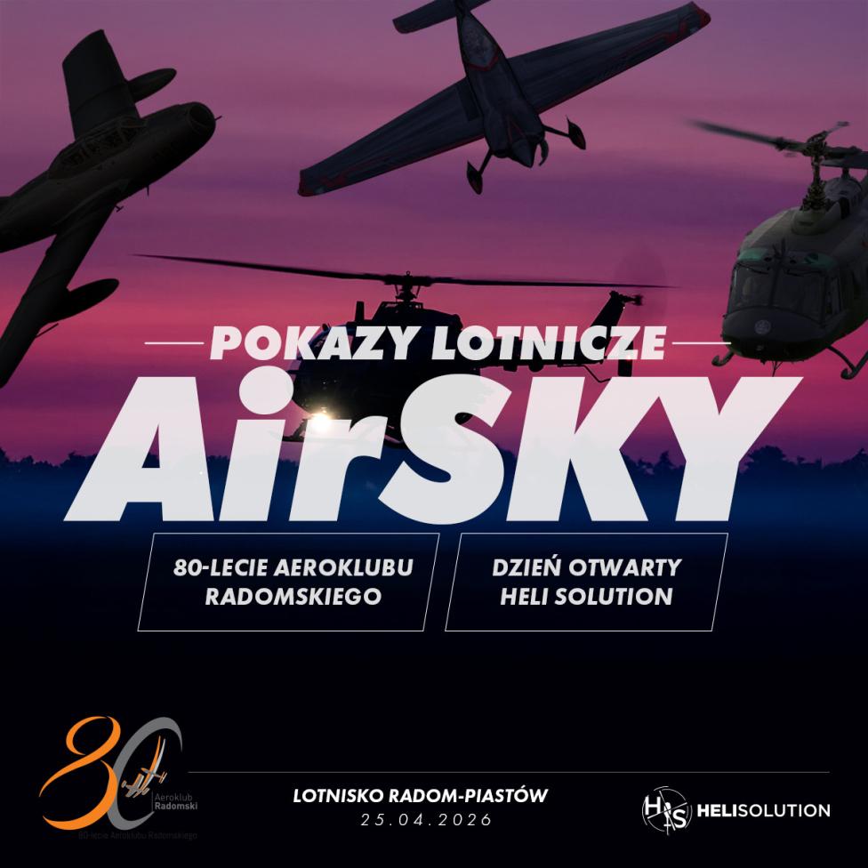 Przed nami huczne rozpoczęcie sezonu imprez lotniczych. W imieniu organizatorów serdecznie zapraszamy w sobotę 25 kwietnia 2026 r. na AirSKY 2026 na lotnisku w Piastowie koło Radomia.