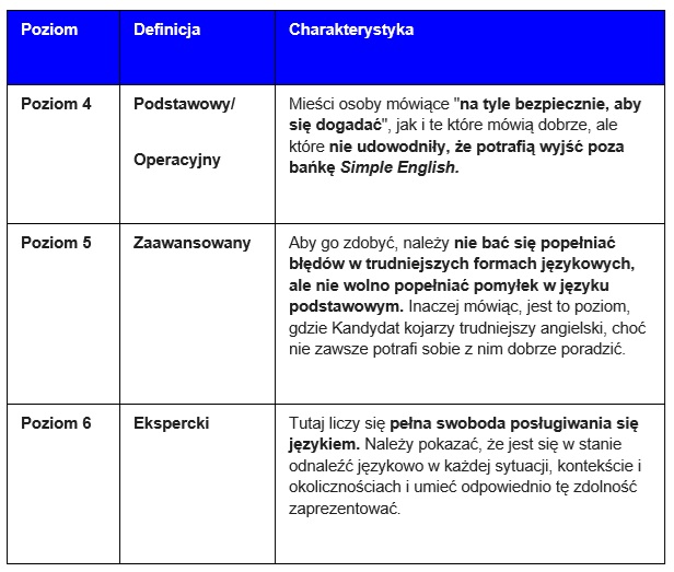 Skala ocen, którą ICAO zdefiniowało wiele lat temu, jest dość rozbudowana, jeśli chodzi o definicje poszczególnych poziomów, jednak na potrzeby obrazowego zrozumienia, jak należy odczytywać poszczególne z nich, można przyjąć podział jak w tabeli poniżej.