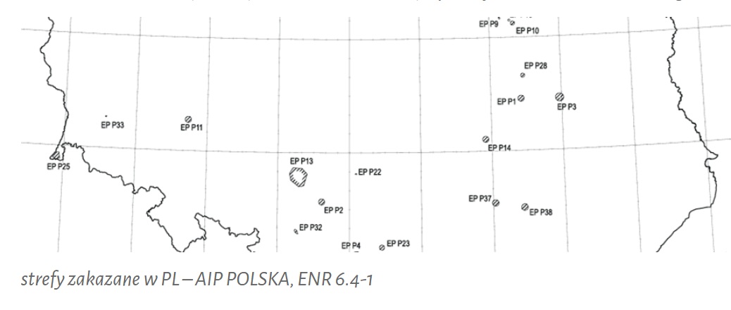 Strefa P to strefa zakazana. Definicja tejże znajduje się w rozporządzeniu SERA i zgodnie z art. 2 pkt. 103 oznacza ona „przestrzeń powietrzną o określonych wymiarach nad obszarami lądowymi lub wodami terytorialnymi państwa, w której loty statków powietrznych są zabronione”. W strefach P latać co do zasady nie można, na co wyraźnie wskazuje nam SERA.3145 – zgodnie z tym przepisem „Statki powietrzne nie mogą wykonywać lotów w strefie zakazanej ani ograniczonej, której dane szczegółowe zostały należycie opublikowane, chyba że loty te odbywają się zgodnie z warunkami ograniczeń lub na podstawie zezwolenia państwa członkowskiego, nad którego terytorium ustanowiono te strefy.”