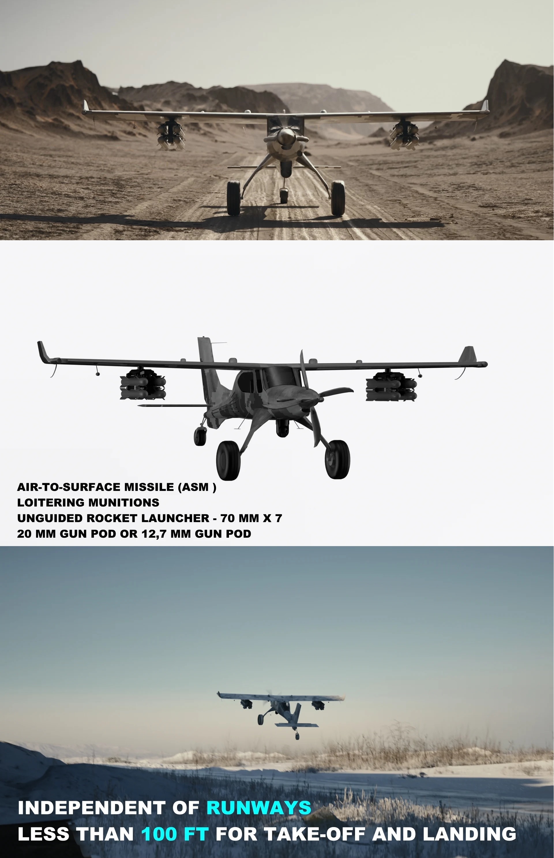 - Modularna konfiguracja uzbrojenia, podwieszana pod skrzydłami do misji kinetycznych i niekinetycznych.