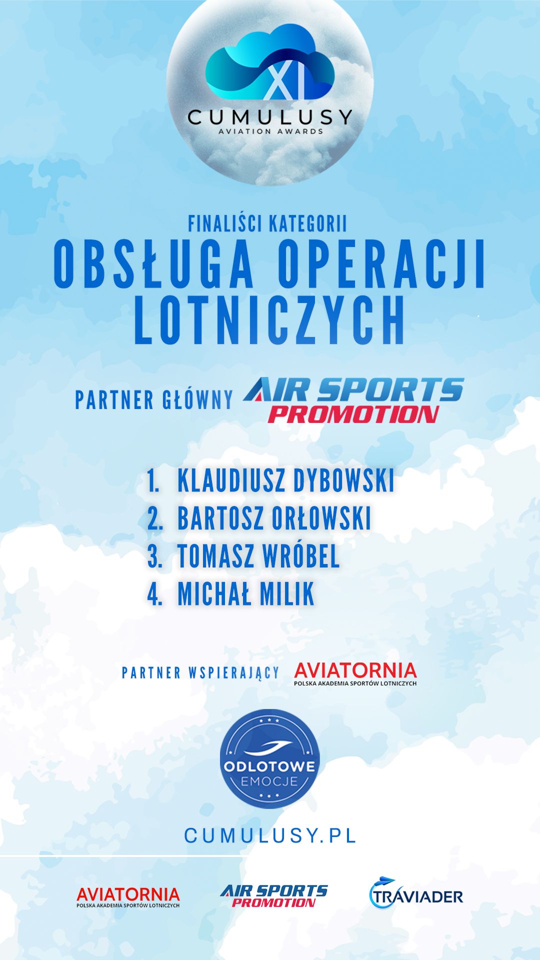 CUMULUSY - ogólnopolski plebiscyt lotniczy organizowany przez Fundację Aviatornia oraz Air Sports Promotion i Traviader sp. z o. o. , aby uskrzydlać, wspierać i promować sportowców lotniczych, dodawać wiary i nadziei marzycielom, angażować kibiców i pasjonatów lotnictwa, a także integrować całe środowisko lotnicze w Polsce.