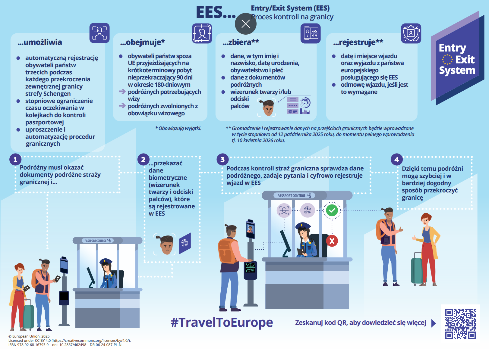EES opiera się w pełni na biometrii – odciskach palców oraz wizerunku twarzy – co pozwala na precyzyjną, elektroniczną identyfikację podróżnych spoza UE. System rejestruje m.in.: