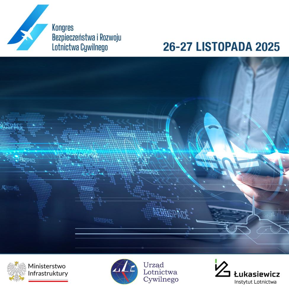 Urząd Lotnictwa Cywilnego wspólnie z Ministerstwem Infrastruktury zapraszają na Kongres Bezpieczeństwa i Rozwoju Lotnictwa Cywilnego, który odbędzie się w dniach 26-27 listopada 2025 r. (środa-czwartek) na terenie Sieci Badawczej Łukasiewicz - Instytut Lotnictwa w Warszawie.