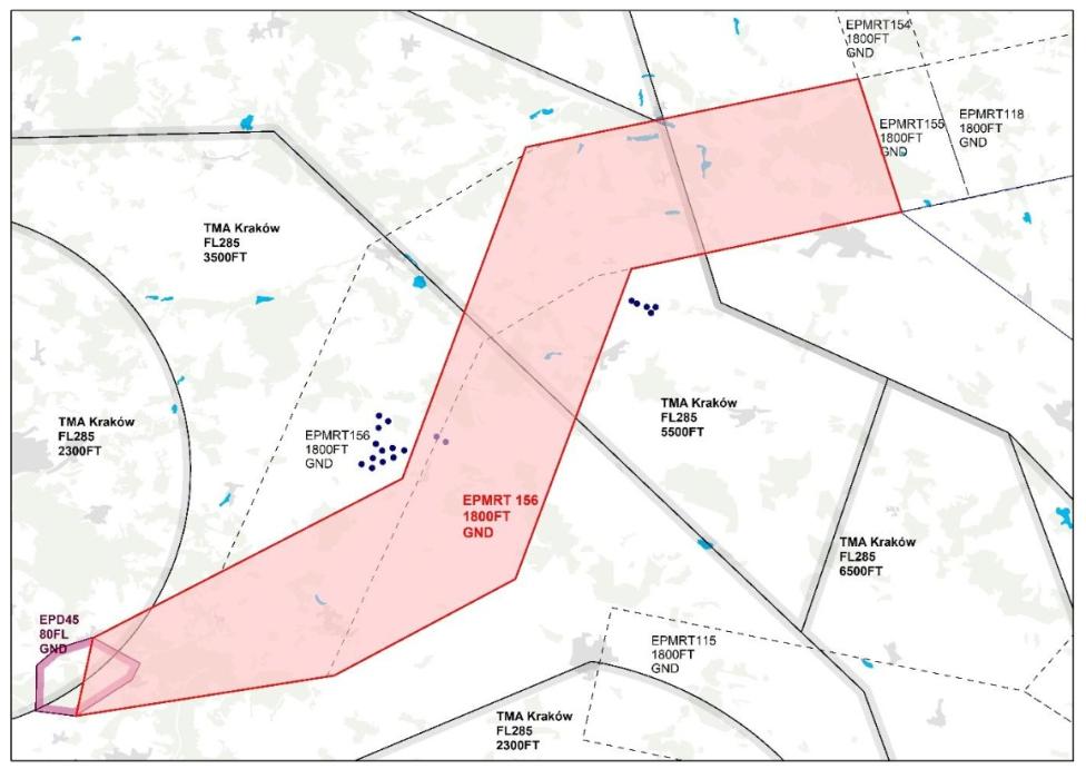 Trasa MRT 156 jest przestrzenią niesklasyfikowaną wyznaczoną w przestrzeni odpowiedzialności służby FIS Kraków prowadzącą do strefy D 45 (Pustynia Błędowska).