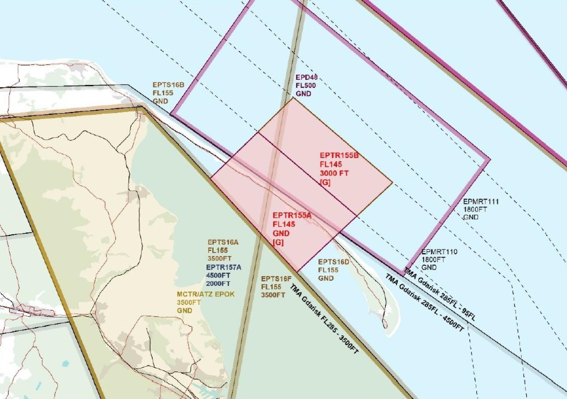 Polska Agencja Żeglugi Powietrznej prowadzi konsultacje społeczne zmiany rejonu JASTARNIA AREA na strefę czasowo rezerwowaną (TRA).