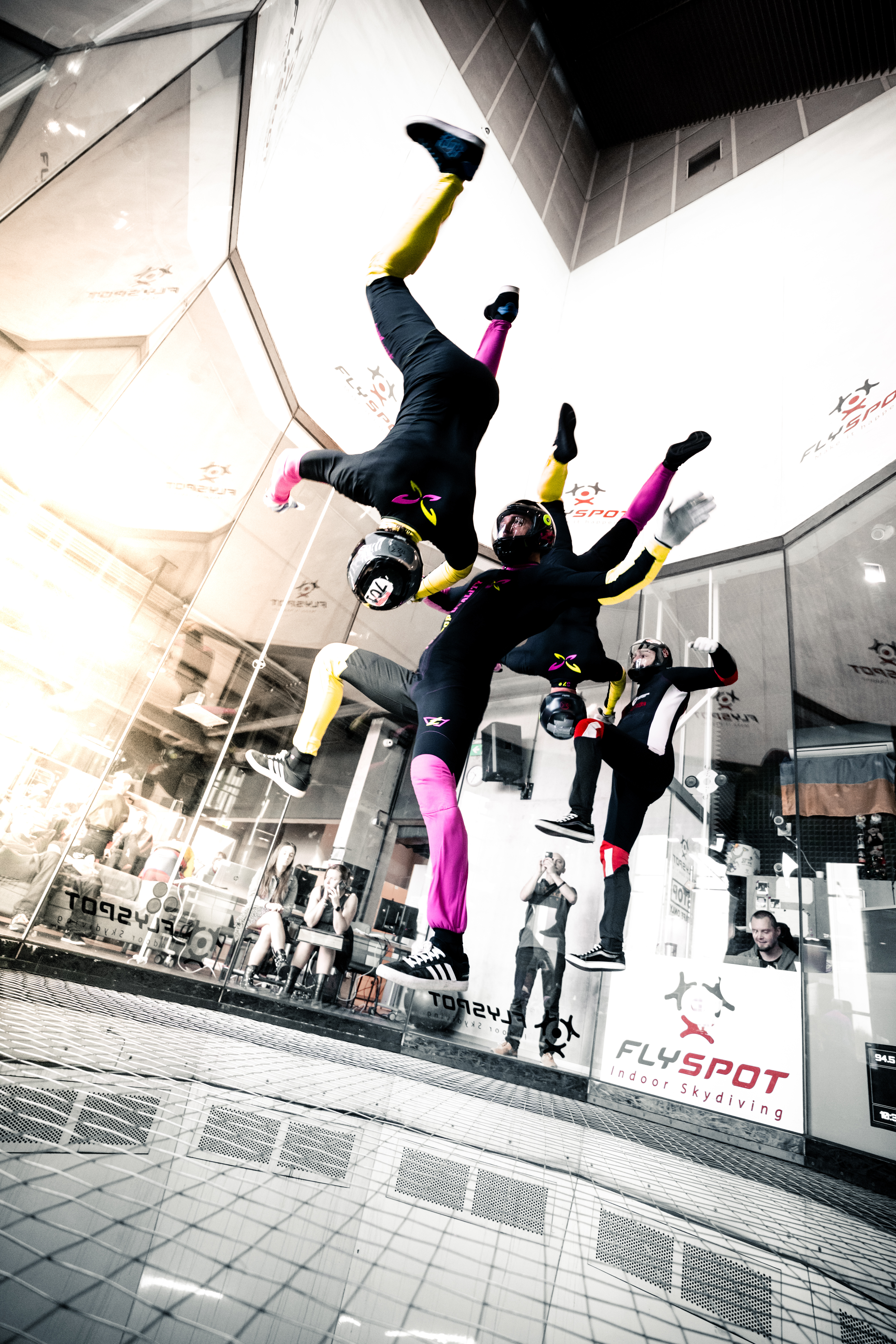 Indoor skydiving to młoda dyscyplina sportowa, jest na miarę XXI wieku! Zawodnicy latają w szklanej tubie i i wykonują precyzyjne powietrzne akrobacje. Widzom może to dać wrażenie, jakby widzieli to w prawdziwej atmosferze, rzeczywistej przestrzeni! W konkurencji FS 2-Way skoczkowie opadają w pozycji płaskiej w układzie dwóch zawodników. FS 4-Way angażuje czterech skoczków, którzy budują odpowiednie figury. W VFS czyli Vertical Formation Skydiving skoczkowie tworzą formacje czyli układy geometryczne podczas spadania w pozycji pionowej. Freestyle Solo to szybkie latanie w pojedynkę. Dynamic 2-Way to dwuosobowe akrobacje w tunelu aerodynamicznym, a Dynamic 4-Way to akrobacyjne układy czteroosobowe.