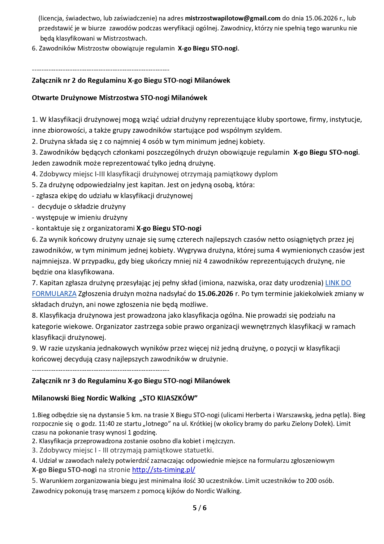 Szczegółowy regulamin X Biegu STO-nogi w Milanówku: