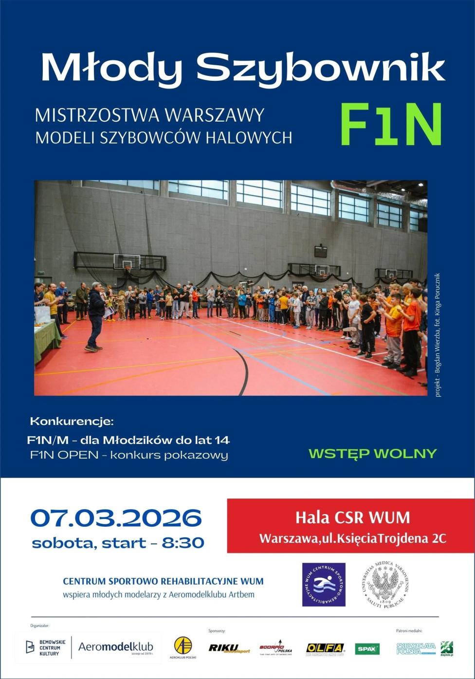 Już 7 marca 2026 r. (sobota) odbędzie się kolejna edycja imprezy sportowo-rekreacyjnej pn. "Młody Szybownik", dedykowanej dla najmłodszych modelarzy z modelarni lotniczych Warszawy i podwarszawskich miejscowości. Zawody odbędą się w Hali Centrum Sportowo-Rehabilitacyjnego Warszawskiego Uniwersytetu Medycznego, ul. Księcia Trojdena 2C, Warszawa.