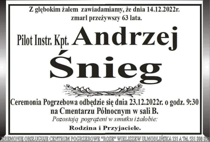 Odszedł Andrzej Śnieg. Pilot, instruktor - data pogrzebu