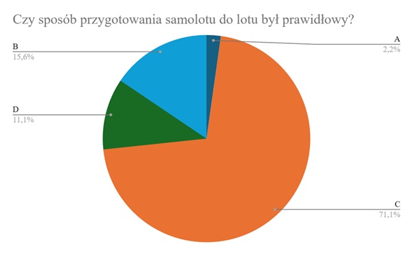 Pytanie pierwsze dotyczyło samego przygotowania do lotu. Czy sposób przygotowania samolotu do lotu był prawidłowy?