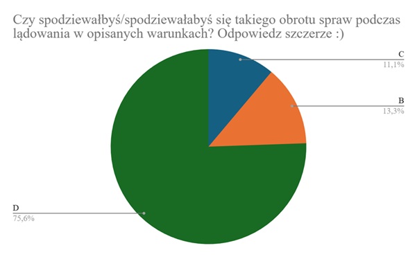 Pytanie piąte odnosiło się natomiast do Waszego postrzegania sytuacji. Czy spodziewałbyś/spodziewałabyś się takiego obrotu spraw podczas lądowania w opisanych warunkach? Odpowiedz szczerze:)