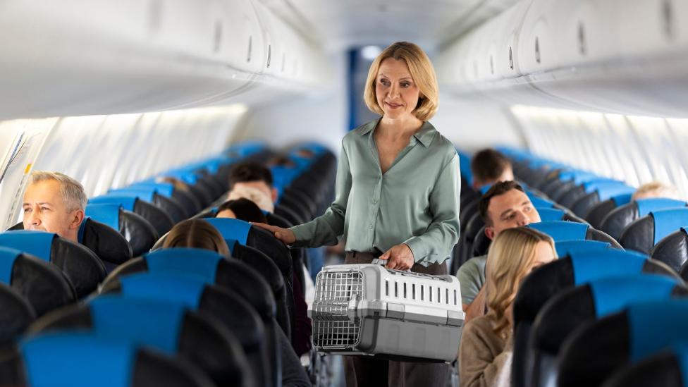 - Kabina pasażerska to najbardziej komfortowa opcja dla małych zwierząt. Zwierzę wraz z transporterem nie powinno przekraczać zwykle 8–10 kg i musi zmieścić się pod fotelem.