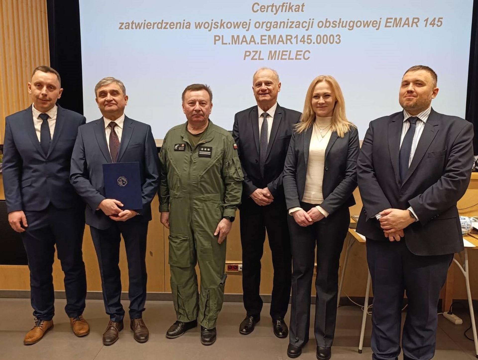 Uroczyste wręczenie Certyfikatu nr PL.MAA.EMAR145.0003 odbyło się 28 stycznia 2026 r. w Poznaniu, podczas odprawy Głównego Inżyniera Lotnictwa Wojskowego. Dokument został przekazany na ręce Artura Wojtasa, Członka Zarządu, Dyrektora Serwisu i Prób w Locie PZL Mielec, przez Szefa Władzy Lotnictwa Wojskowego płk pil. mgr inż. Leszka Błacha oraz Głównego Inżyniera Lotnictwa Wojskowego płk mgr inż. Karola Budniaka.