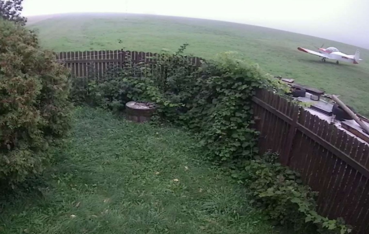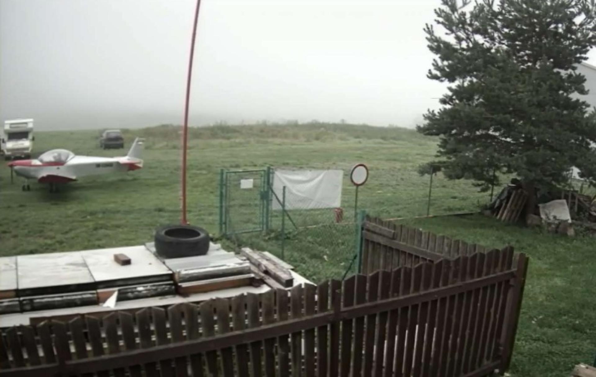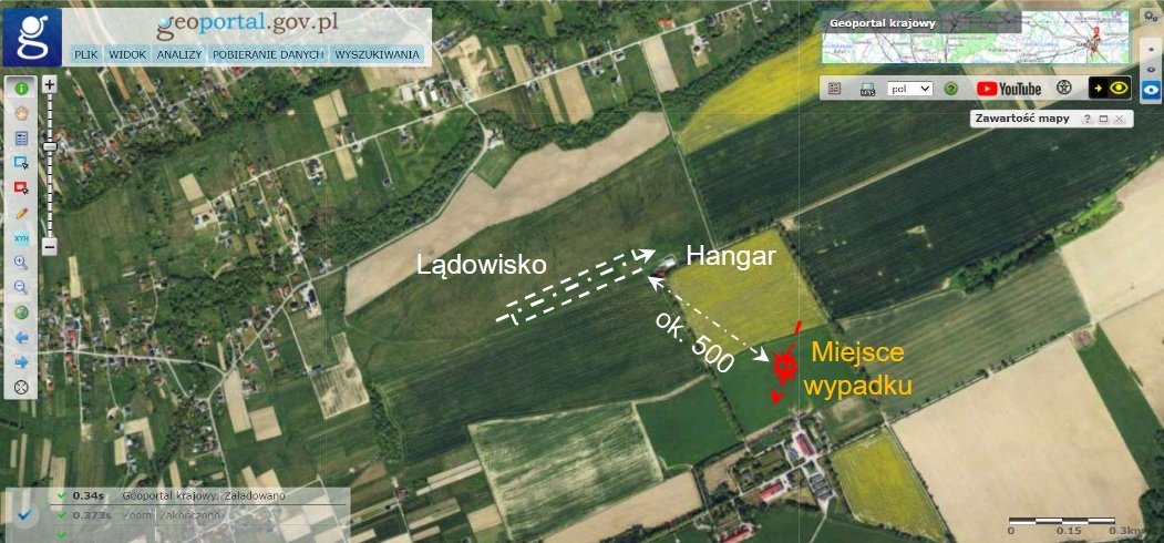 Kamera umiejscowiona na północnej ścianie budynku przy lądowisku, zarejestrowała otwarcie wrót hangaru i wyciąganie z niego samolotu, przegląd do lotu wykonywany przez jedną osobę, zajmowanie miejsca w kabinie przez dwie osoby, uruchomienie i próbę silnika oraz odkołowanie do startu:
