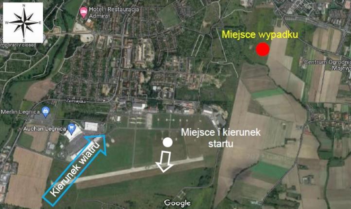 Wszystkie starty odbywały się w kierunku południowym, z trawiastej części lądowiska w Legnicy. Piloci „B”, „C” oraz „A” powrócili i wylądowali bezpiecznie na lądowisku. Zaniepokojeni przedłużającą się nieobecnością pilota „D”, bezskutecznie wywoływali go drogą radiową oraz dzwonili na jego numer telefonu.