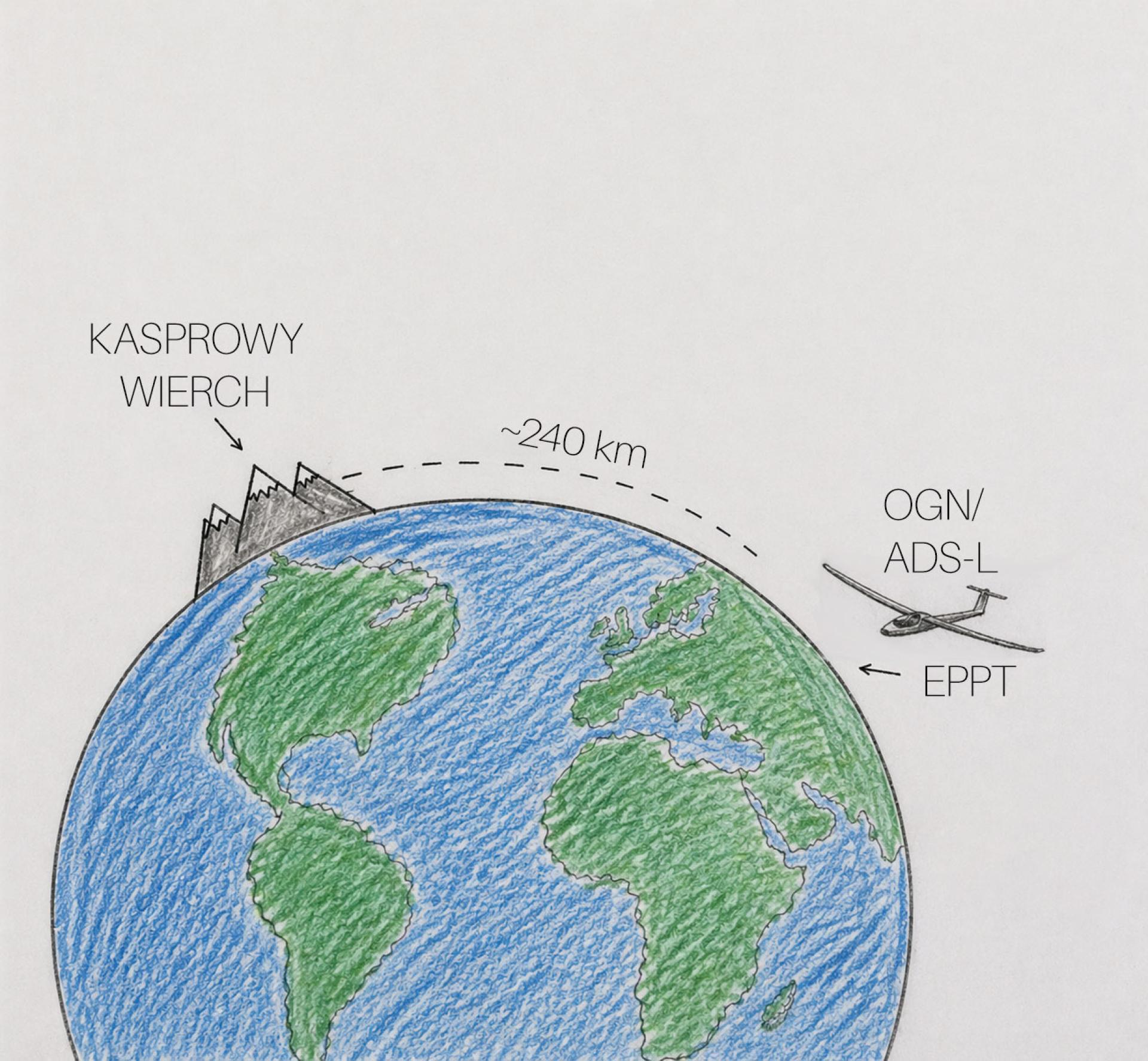 Artykuł opisuje ustanowienie rekordu zasięgu sieci Open Glider Network (OGN), gdzie sygnał odebrano z odległości aż 240 km, co znacząco przekracza typowe wartości dla tej technologii. Standardowo urządzenia OGN/ADS-L mają niewielką moc i zasięg liczony raczej w dziesiątkach kilometrów, dlatego taki wynik uznaje się za wyjątkowy.