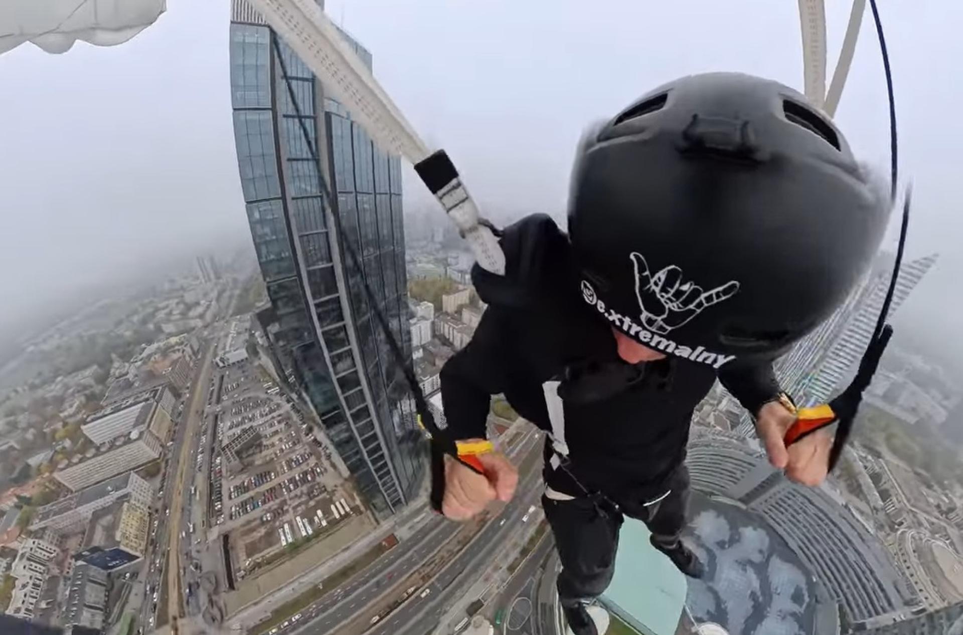 Spadochroniarz skoczył z Warsaw Tower
