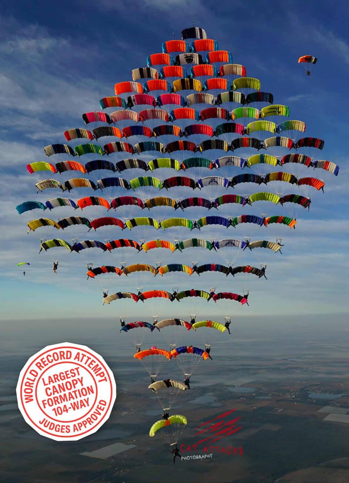 24 listopada powiadomiliśmy o historycznym osiągnięciu polskich reprezentantów – Szymona „SIMON” Chełmickiego i Michała „BALON” Balonisa ze Skydive Warszawa, którzy w 22 listopada 2025 roku brali udział w uformowaniu imponującej formacji 104 skoczków z 20 krajów w kształcie diamentu. Tym samym ustanowiono, po 18 latach i 1 dniu, nowy rekord świata Canopy Formations. (link)