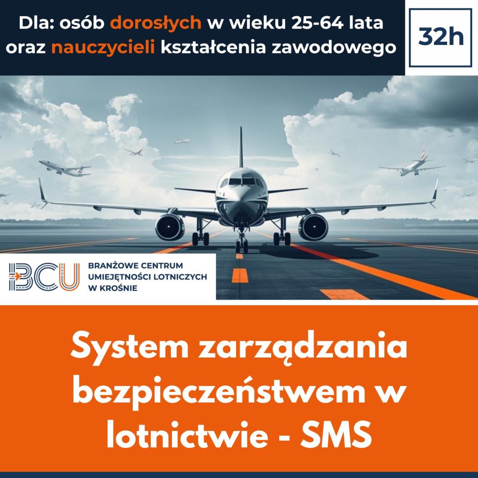 Branżowe Centrum Umiejętności Lotniczych w Krośnie uruchomiło rekrutację na specjalistyczne szkolenie "System zarządzania bezpieczeństwem w lotnictwie – SMS", skierowane do dwóch grup: osób dorosłych w wieku 25-64 lata - niebędących nauczycielami kształcenia zawodowego, osób będących nauczycielami kształcenia zawodowego, które chcą rozwijać swoje kompetencje w obszarze nowoczesnych technologii i lotnictwa.