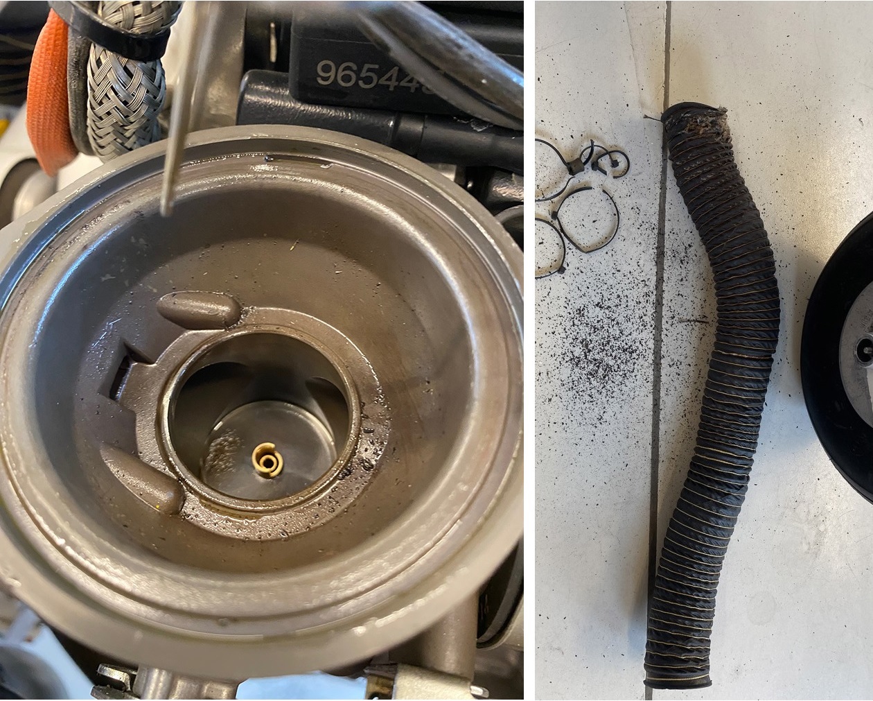 Podczas analizy przyczyn usterek stwierdzono obecność czarnego, gruboziarnistego pyłu wewnątrz gaźników oraz airboxa. Po zdemontowaniu przewodu powietrznego łączącego wymiennik ciepła z airboxem ujawniono, że wewnętrzna warstwa przewodu ulega kruszeniu, mimo że jego zewnętrzna powierzchnia nie wykazywała uszkodzeń.