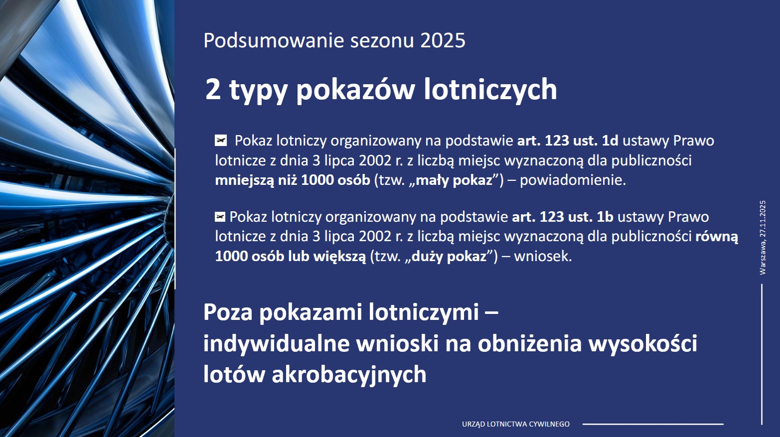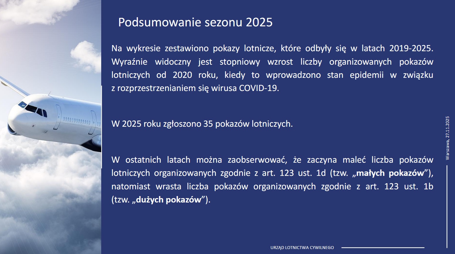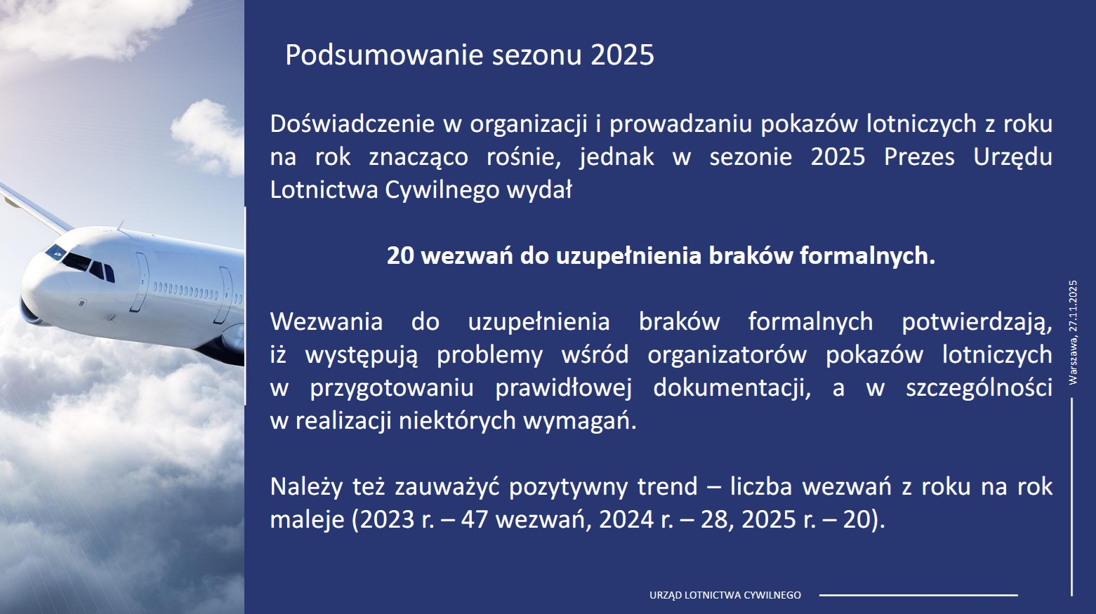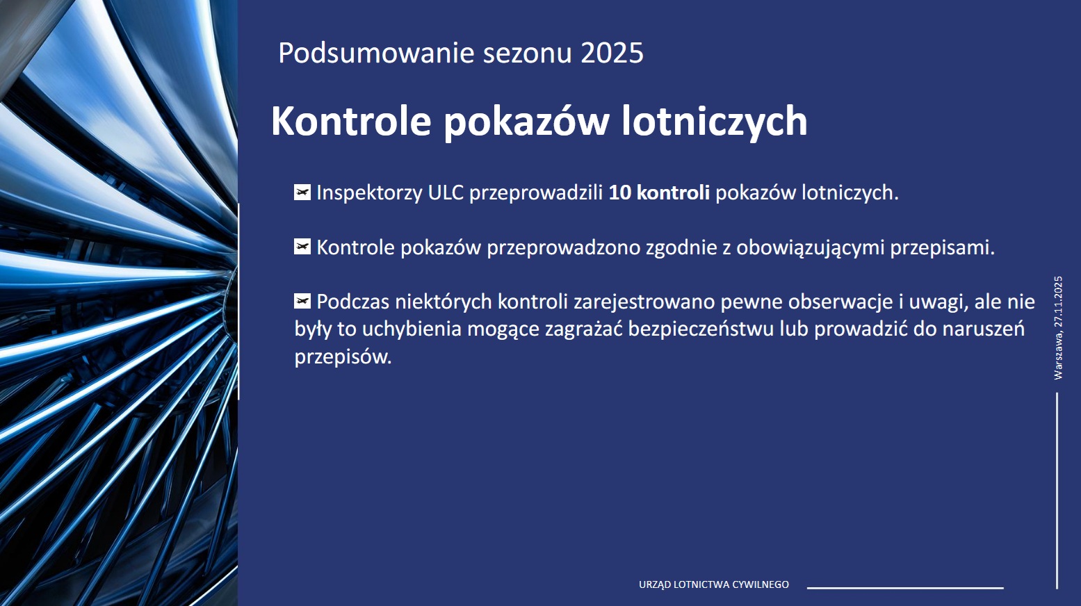 ULC podkreśla, że doświadczenie organizatorów z roku na rok rośnie, co przekłada się na coraz lepszą jakość dokumentacji i bezpieczeństwo pokazów lotniczych w Polsce.
