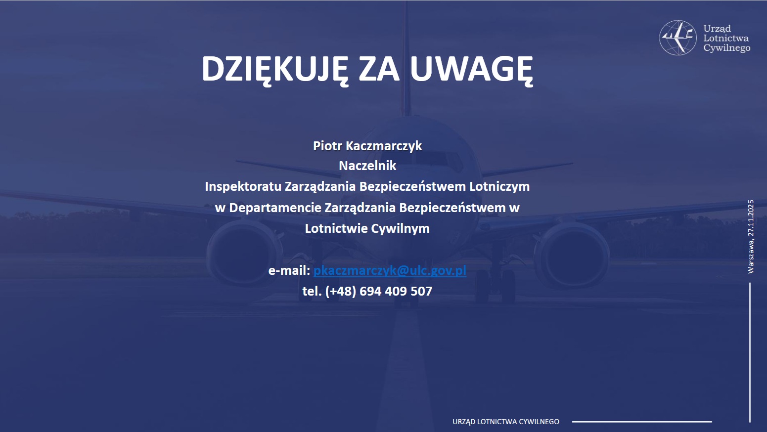 26 listopada 2025 r. odbył się zorganizowany przez ULC „Kongres Bezpieczeństwa i Rozwoju Lotnictwa Cywilnego”. Prosimy nie mylić jednak tej imprezy z organizowaną co roku "Konferencją bezpieczeństwa" w której zwyczajowo, w jednym dniu były omawiane zagadnienia lotnictwa ogólnego, a w drugim zaś, pozostałe inne tematy w tym również zagadnienia lotnictwa komunikacyjnego. Kongres otworzył minister Dariusz Klimczak, Minister Infrastruktury oraz Julian Rotter, Prezesa Urzędu Lotnictwa Cywilnego.