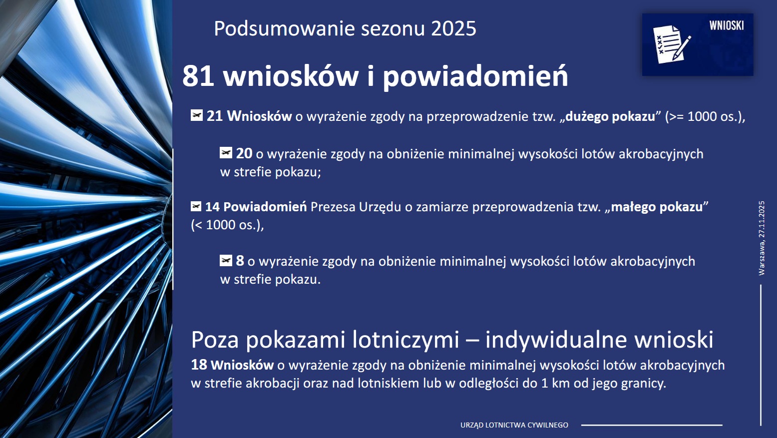 - 28 wniosków dotyczących obniżenia minimalnej wysokości wykonywania akrobacji.