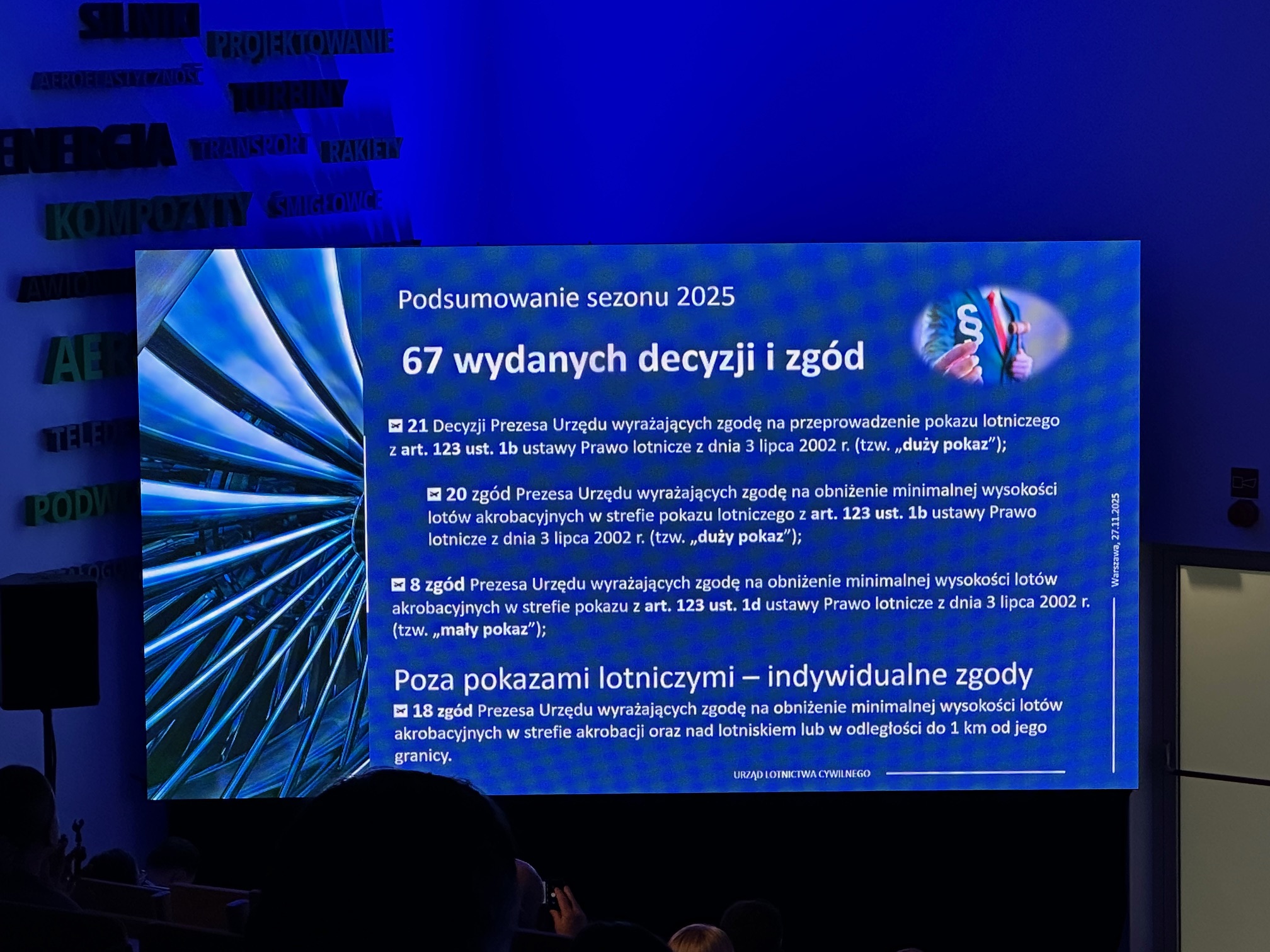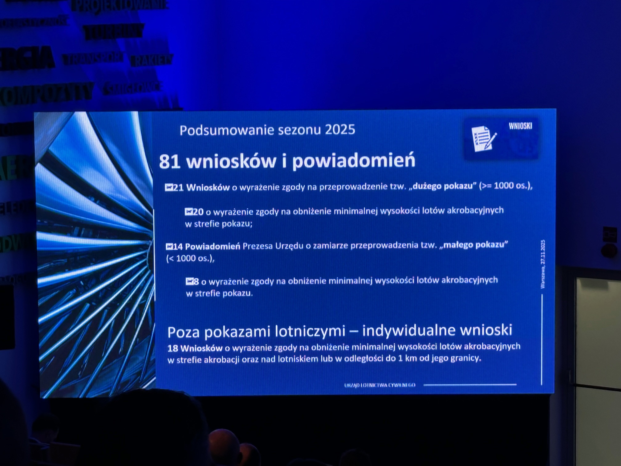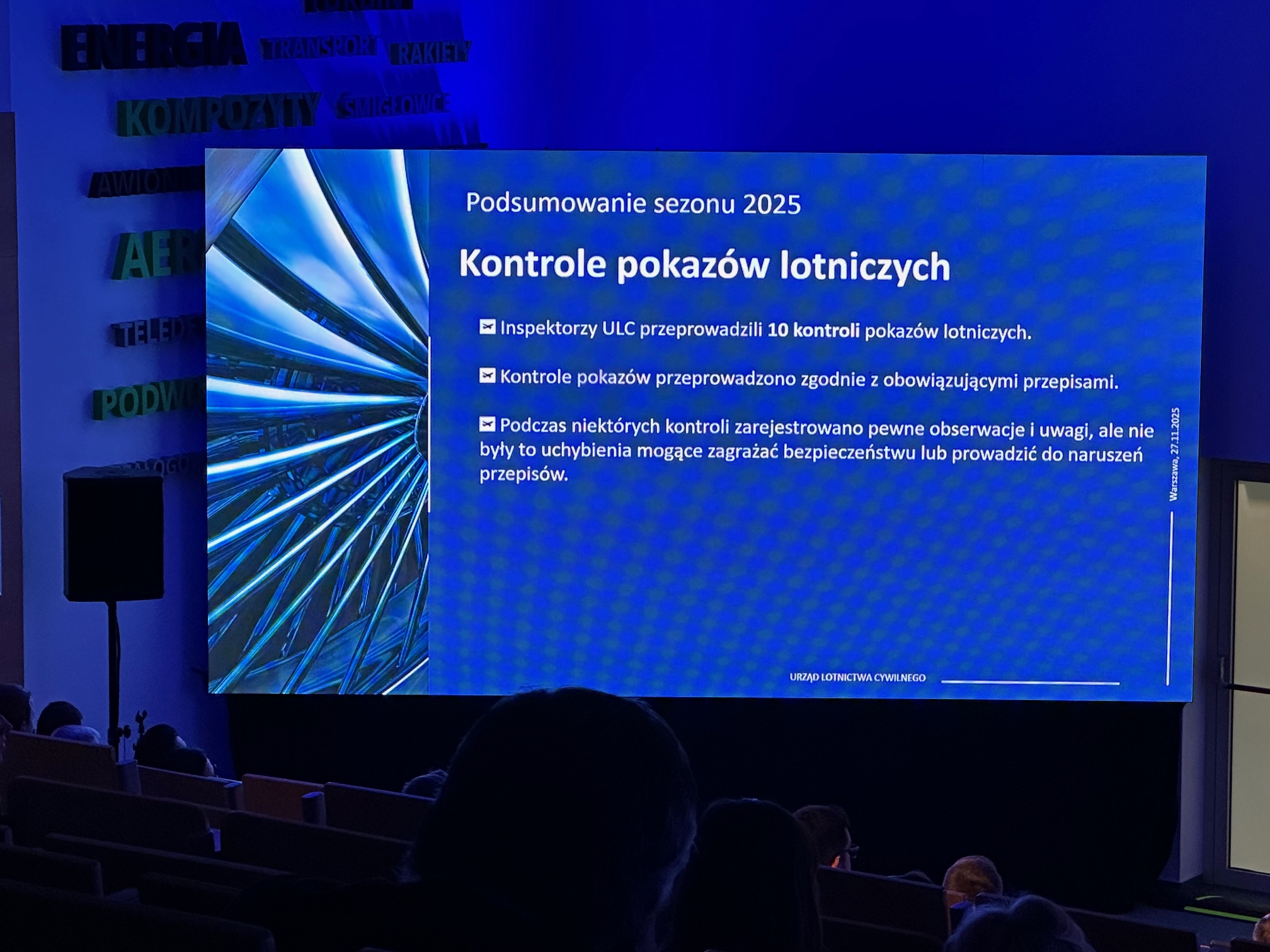 Podczas Kongresu, ULC przedstawił szczegółowe podsumowanie sezonu pokazów lotniczych 2025. Przedstawiono liczbę zorganizowanych pokazów (oficjalnych), wydanych zgód, przeprowadzonych kontroli oraz najczęściej popełnianych błędów formalnych w dokumentacji składanej przez organizatorów.