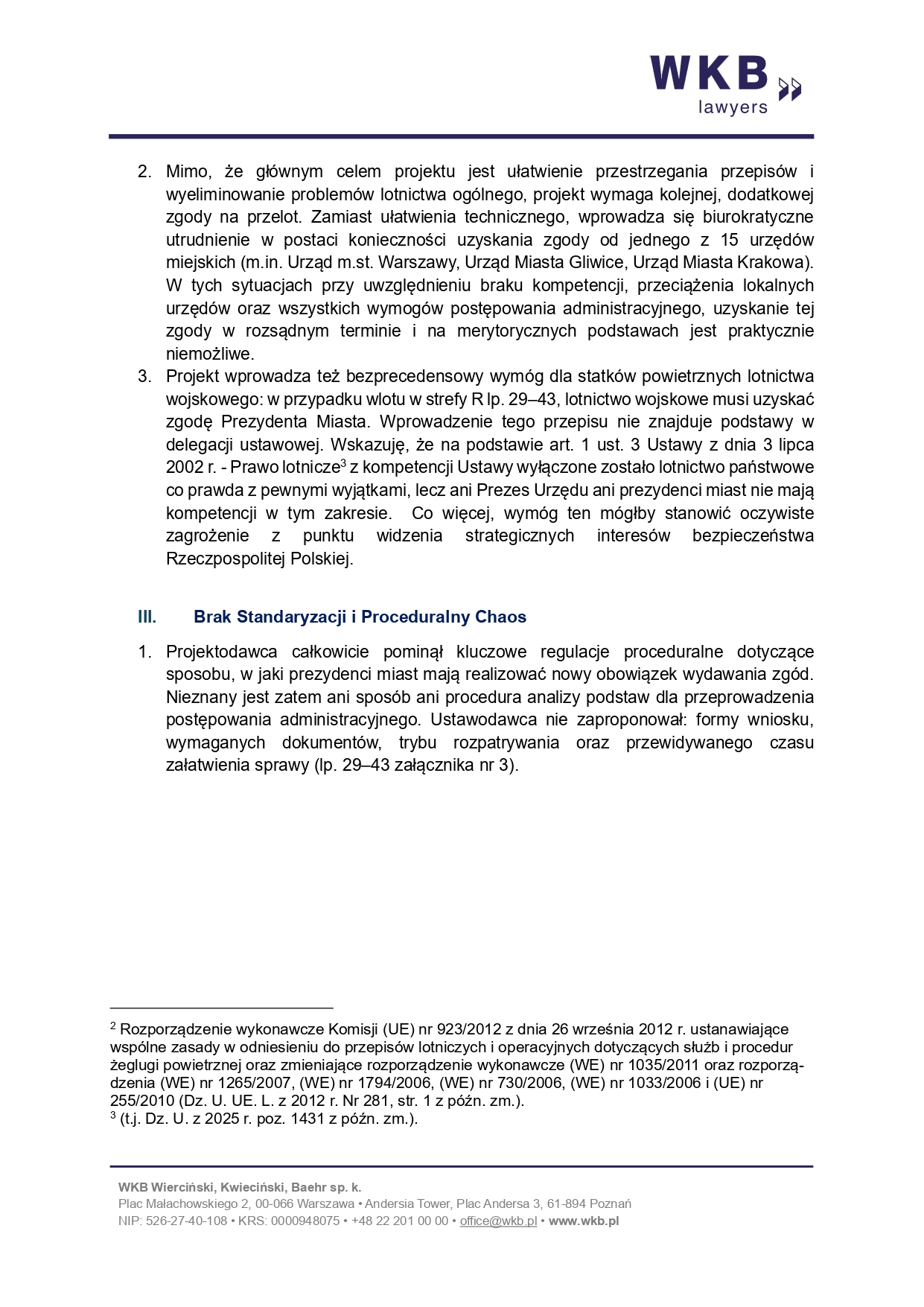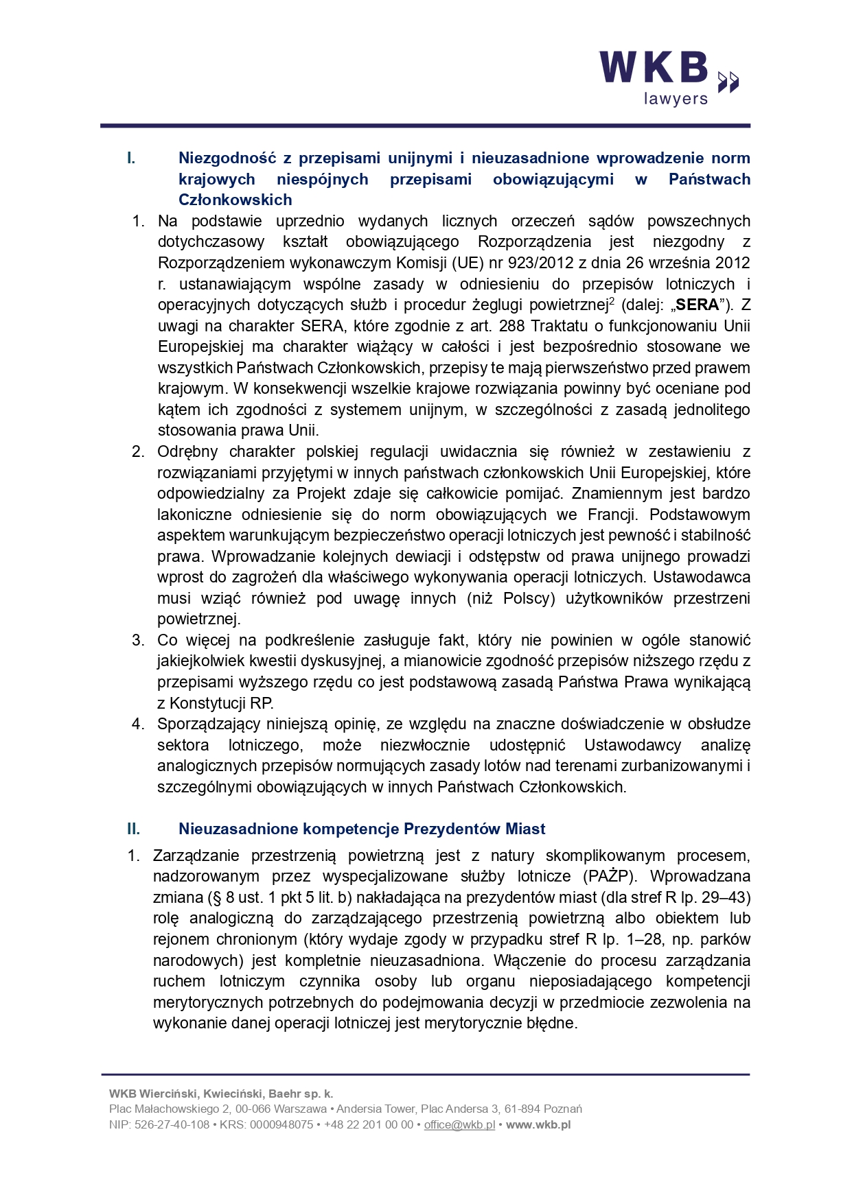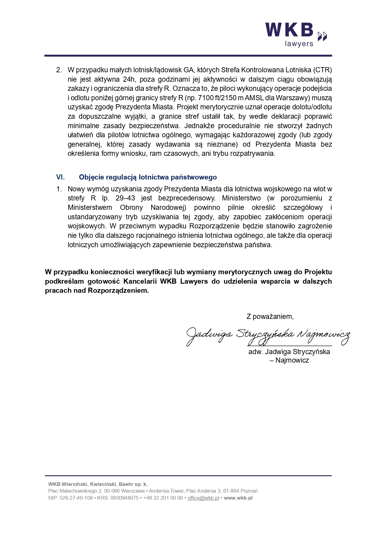 W kwestii projektu rozporządzenia Ministra Infrastruktury zmieniającego rozporządzenie w sprawie zakazów lub ograniczeń lotów na czas dłuższy niż 3 miesiące pojawił się kolejny głos, tym razem wystosowany przez prawników Kancelarii WKB Lawyers.