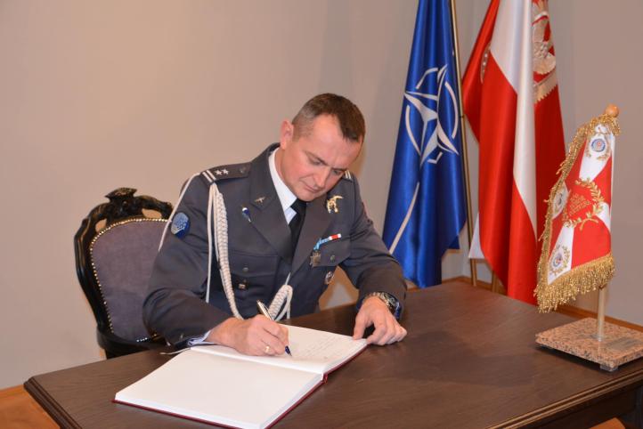 Ppłk. Stachurskiego, zgodnie z ceremoniałem wojskowym żegnał dowódca 42 BLSz płk pil. Maciej Siemiński, koleżanki i koledzy w obecności pocztu sztandarowego. Uroczystość zakończyła się wpisem do księgi pamiątkowej, gratulacjami kolegów i współpracowników oraz wspólną fotografią.