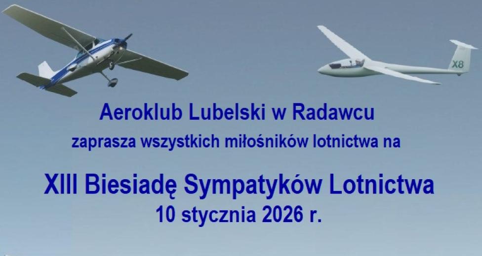 Aeroklub Lubelski w Radawcu zaprasza wszystkich miłośników lotnictwa na XIII Biesiadę Sympatyków Lotnictwa, która odbędzie się 10 stycznia 2026 r. o godz. 17:00. Miejsce imprezy to Maciejowa Chata – Miłocin.